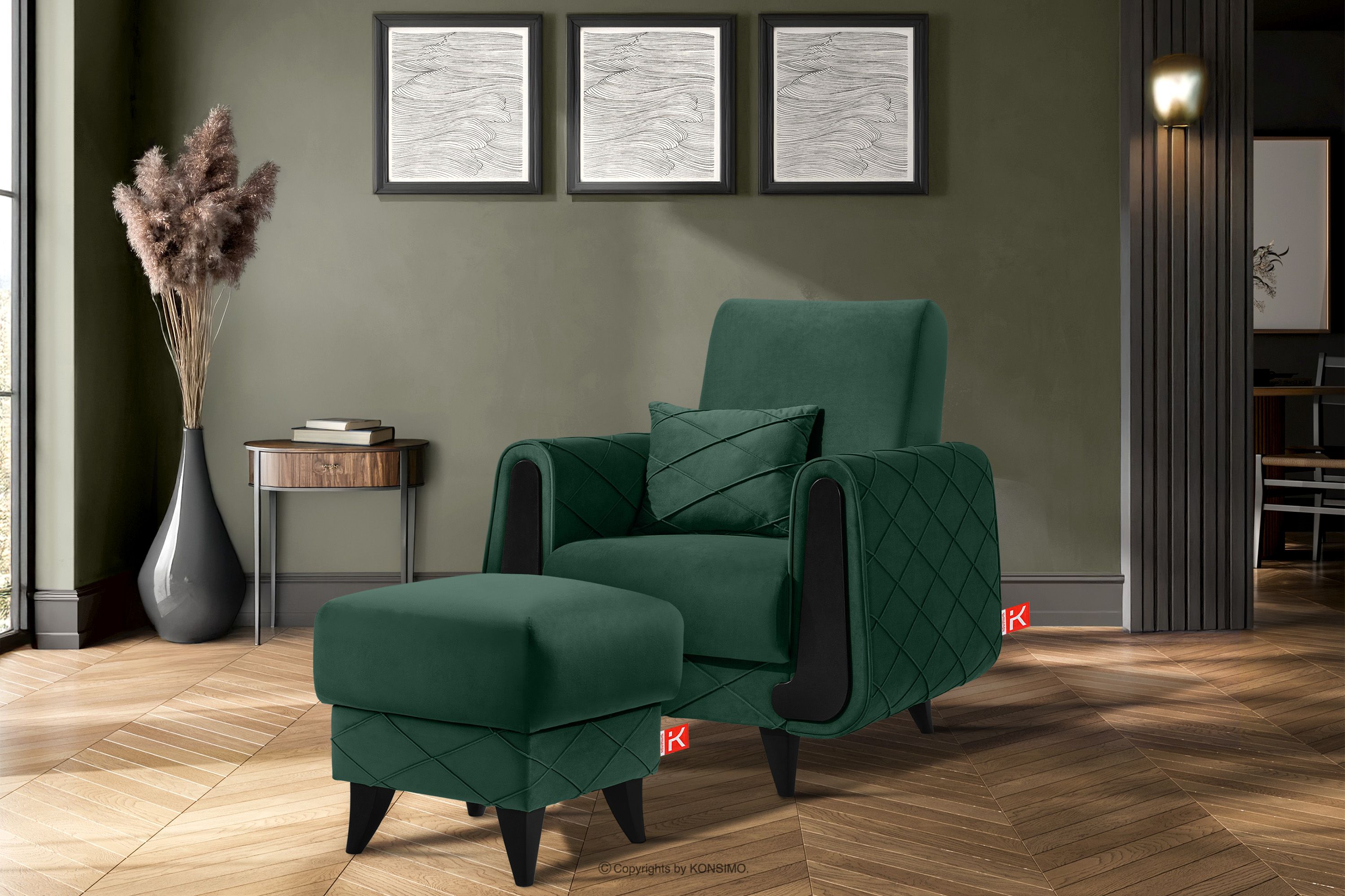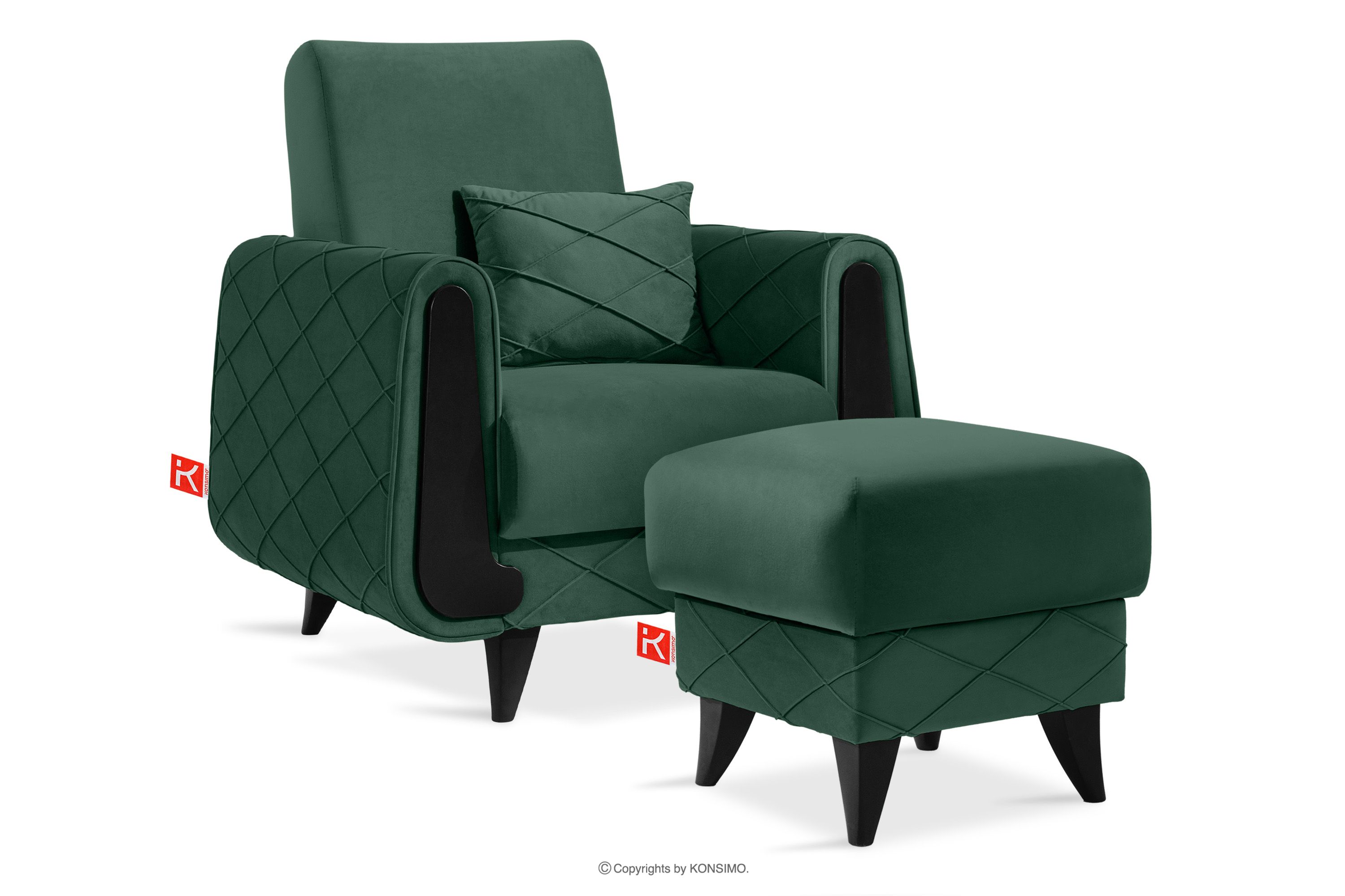 GUSTAVO III Fotel w welurze elegant ciemny zielony