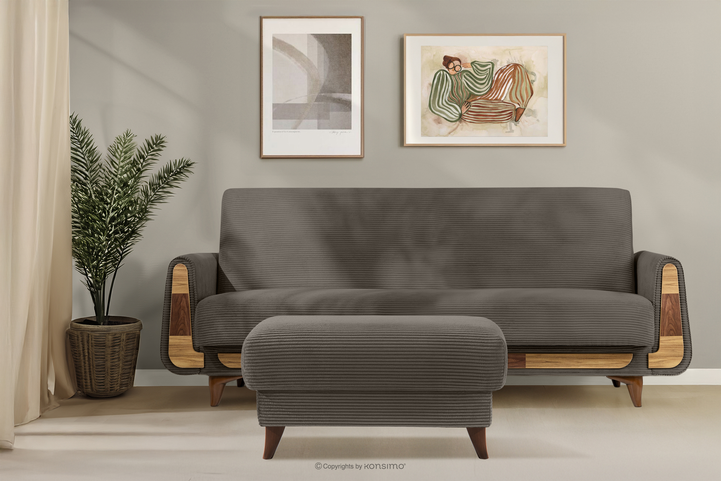 dla produktu Puf do salonu ze schowkiem tkanina sztruks szarobeżowy