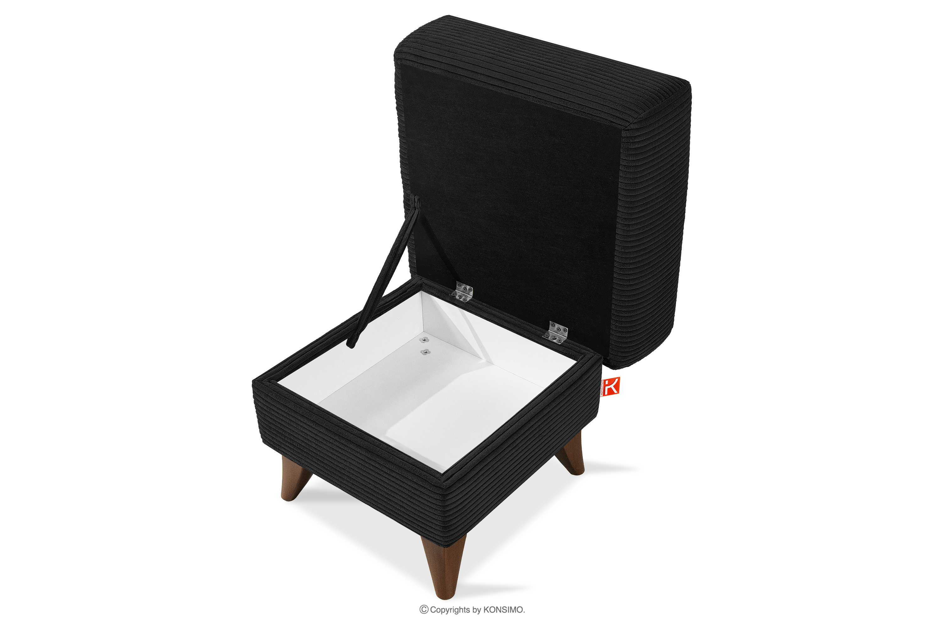 GUSTAVO II zobacz całą kolekcję Podnóżek do salonu ze schowkiem tkanina sztruks czarny- kolor czarny