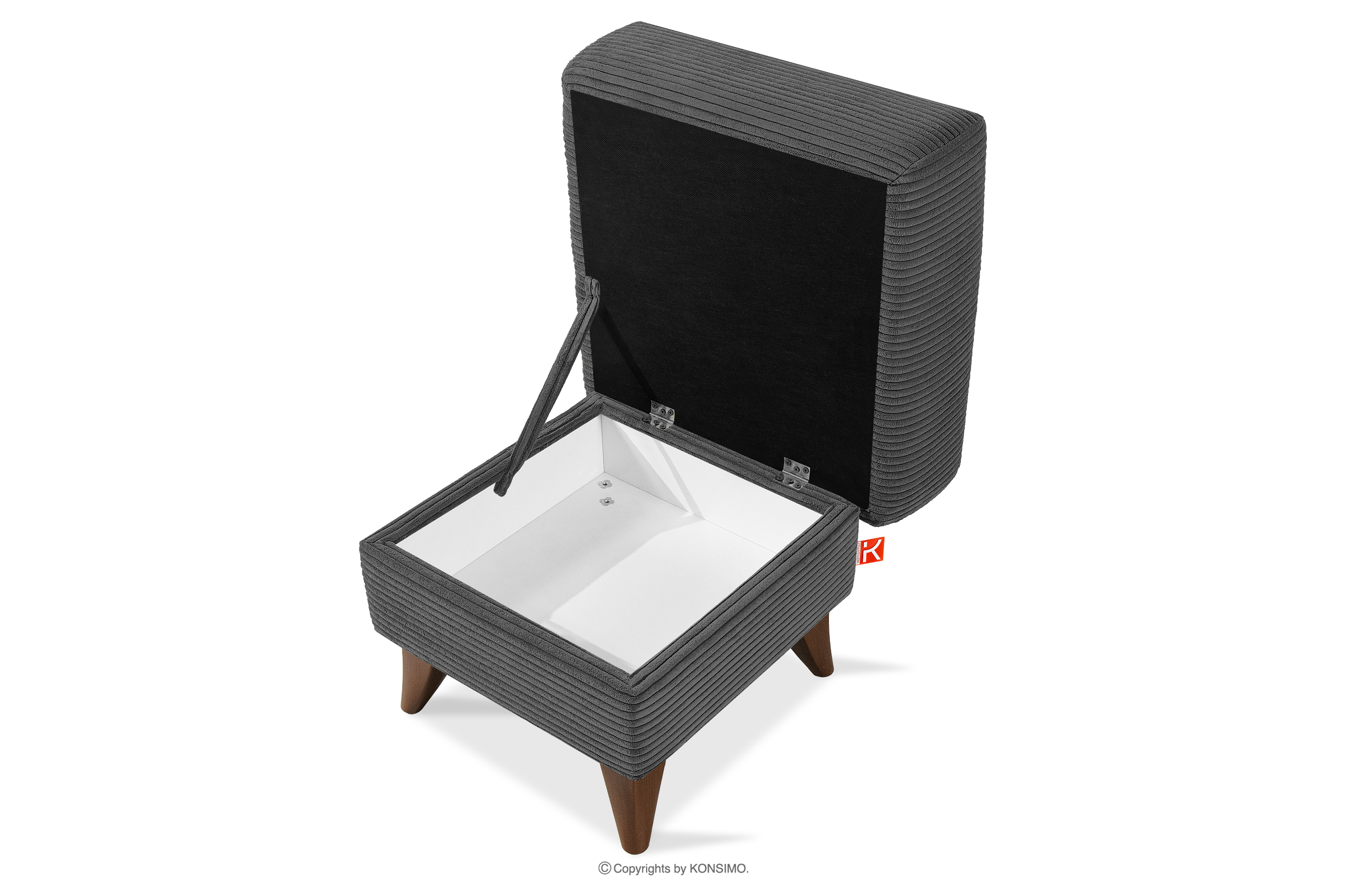 GUSTAVO II zobacz całą kolekcję Podnóżek do salonu ze schowkiem tkanina sztruks ciemny szary- kolor ciemny szary