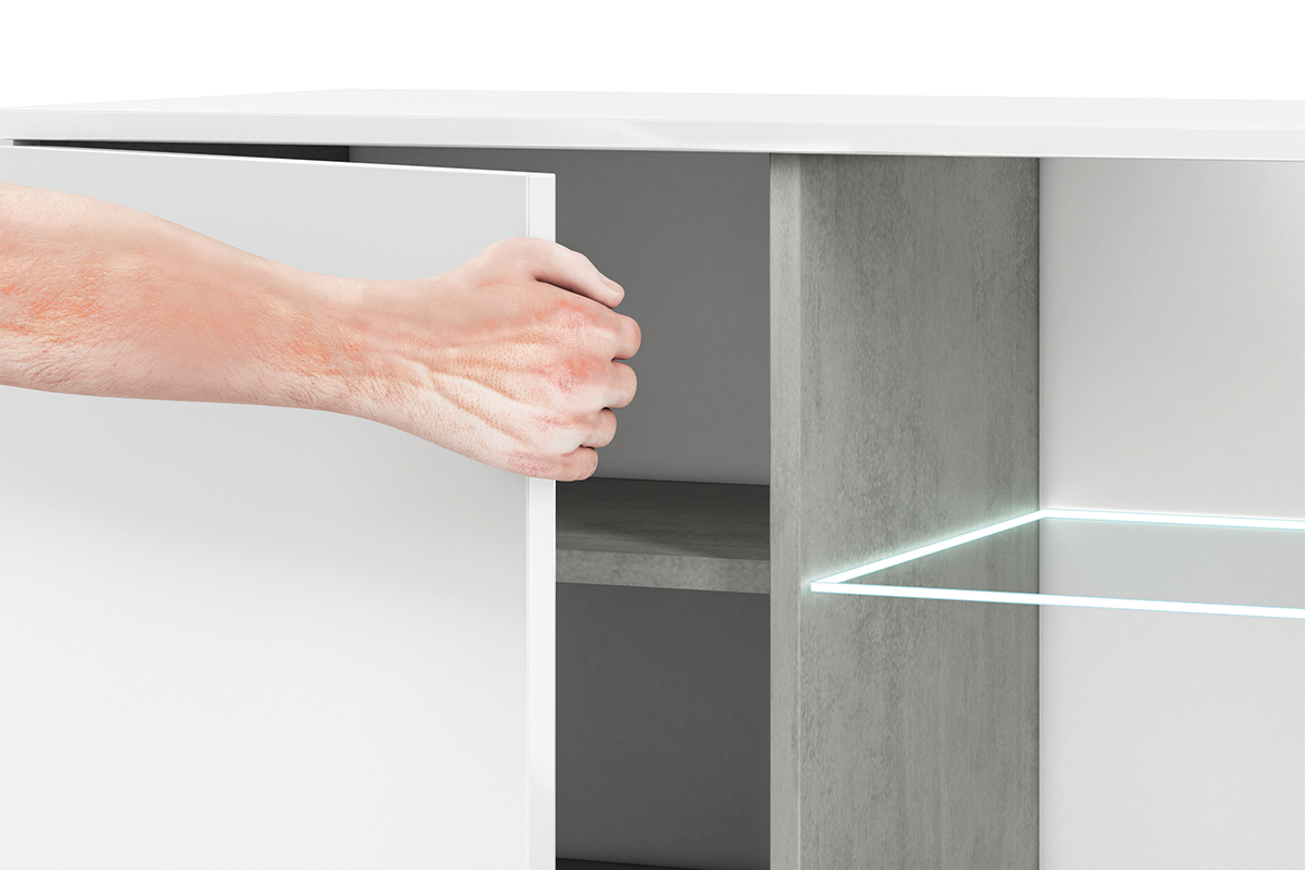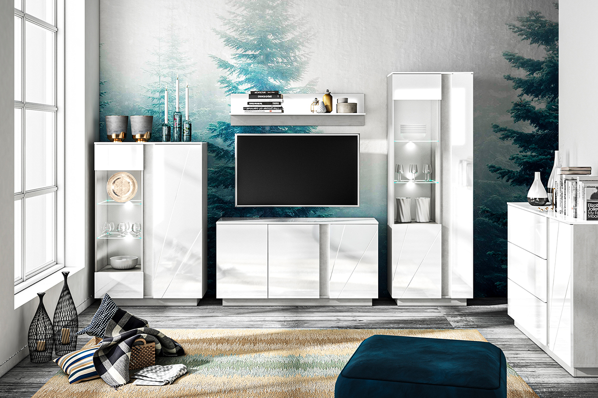 HOSTA zobacz całą kolekcję Szafka rtv biała z połyskiem glamour- kolor biały połysk