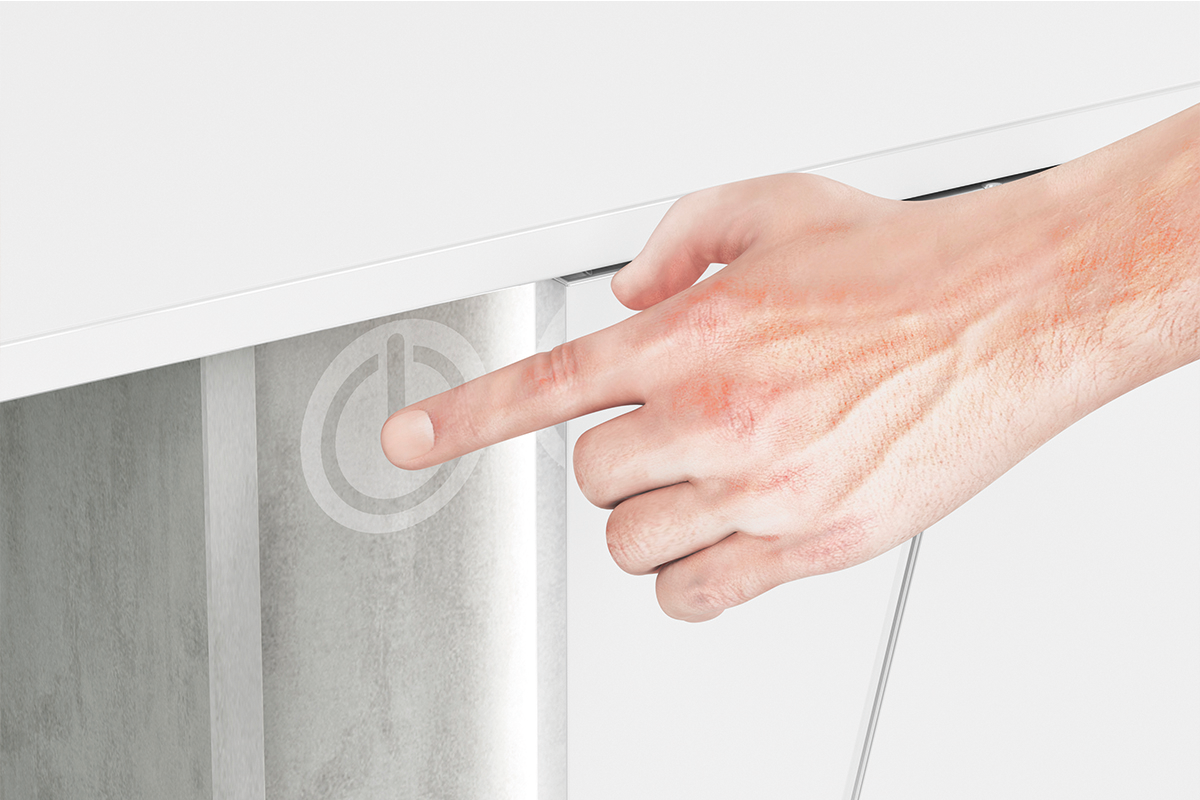 Opcjonalne oświetlenie półkowe 11063.12.054. Pionowa taśma w zestawie.Białe meble HOSTA to doskonały wybór dla każdego, kto pragnie mieć w swoim domu wnętrza pełne blasku. Ich kolorystyka - biały połysk, a także obecne w większości brył oświetlenie pionowe rozjaśnią każde pomieszczenie. Stylowe meble tej z kolekcji są godne uwagi nie tylko przez piękny wygląd.