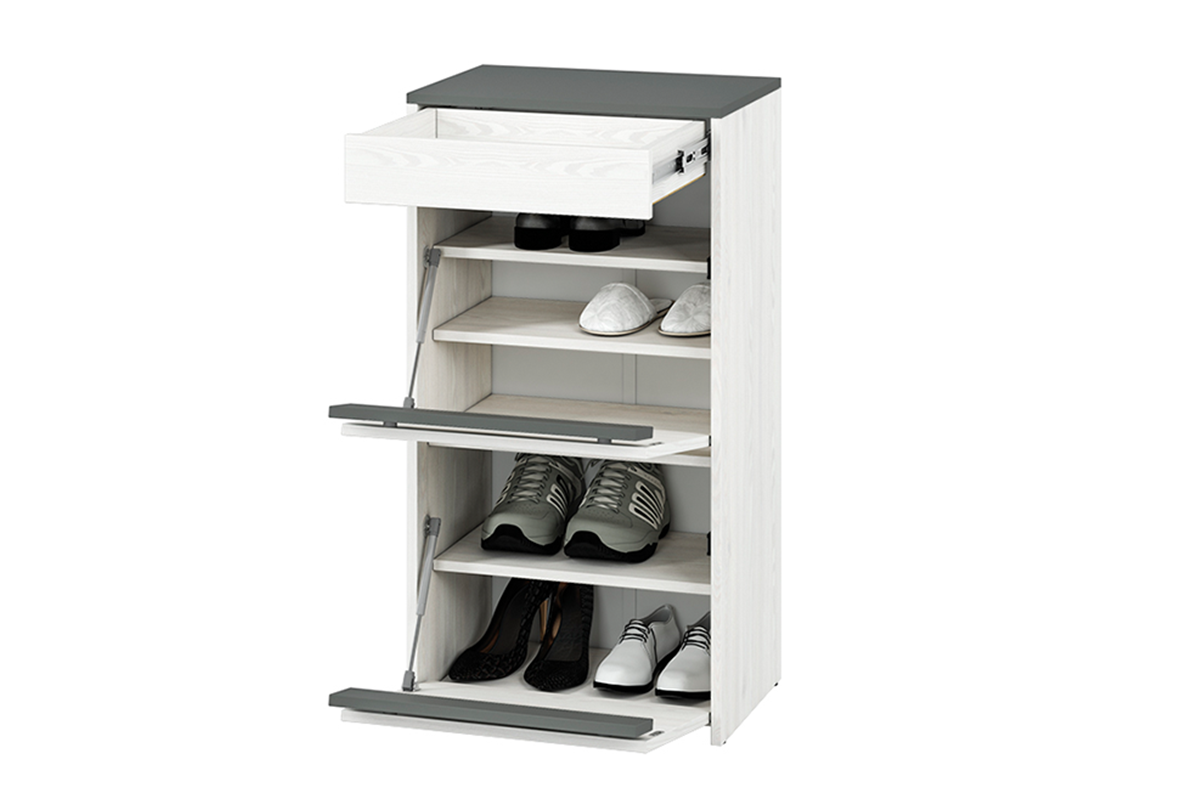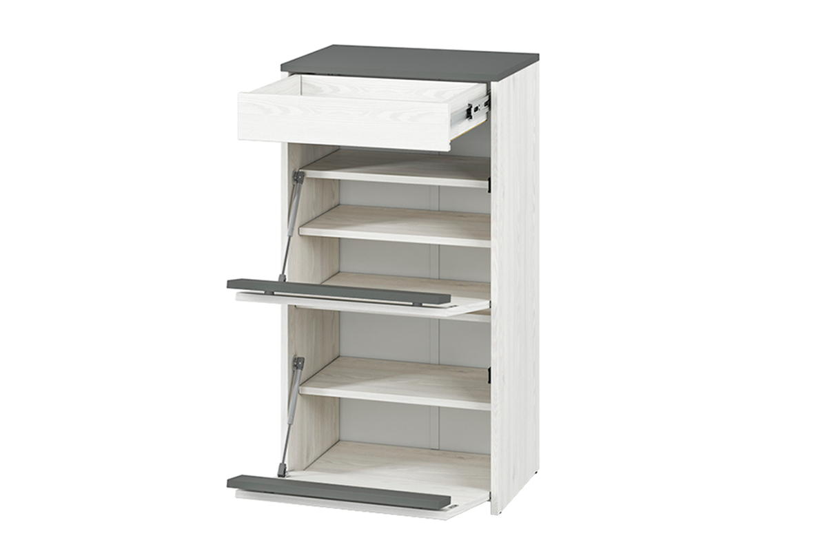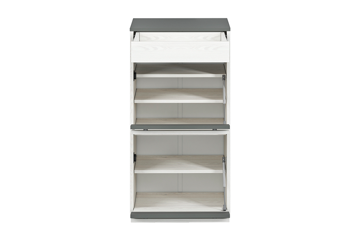 CALLA zobacz całą kolekcję Wysoka szafka na buty z półkami 50 cm do przedpokoju biała / szara- kolor biały/szary