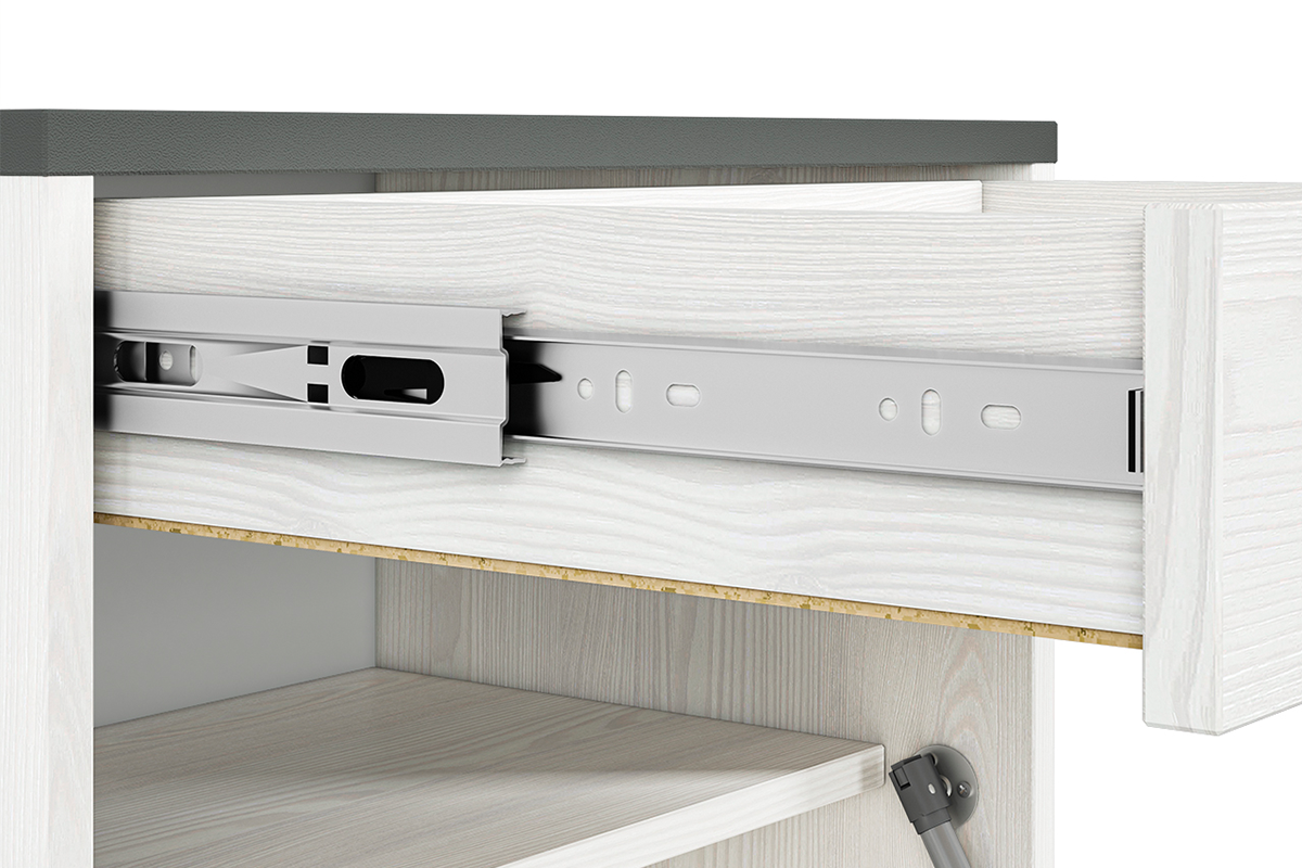- Prowadnice: Kulkowe z pełnym wysuwem