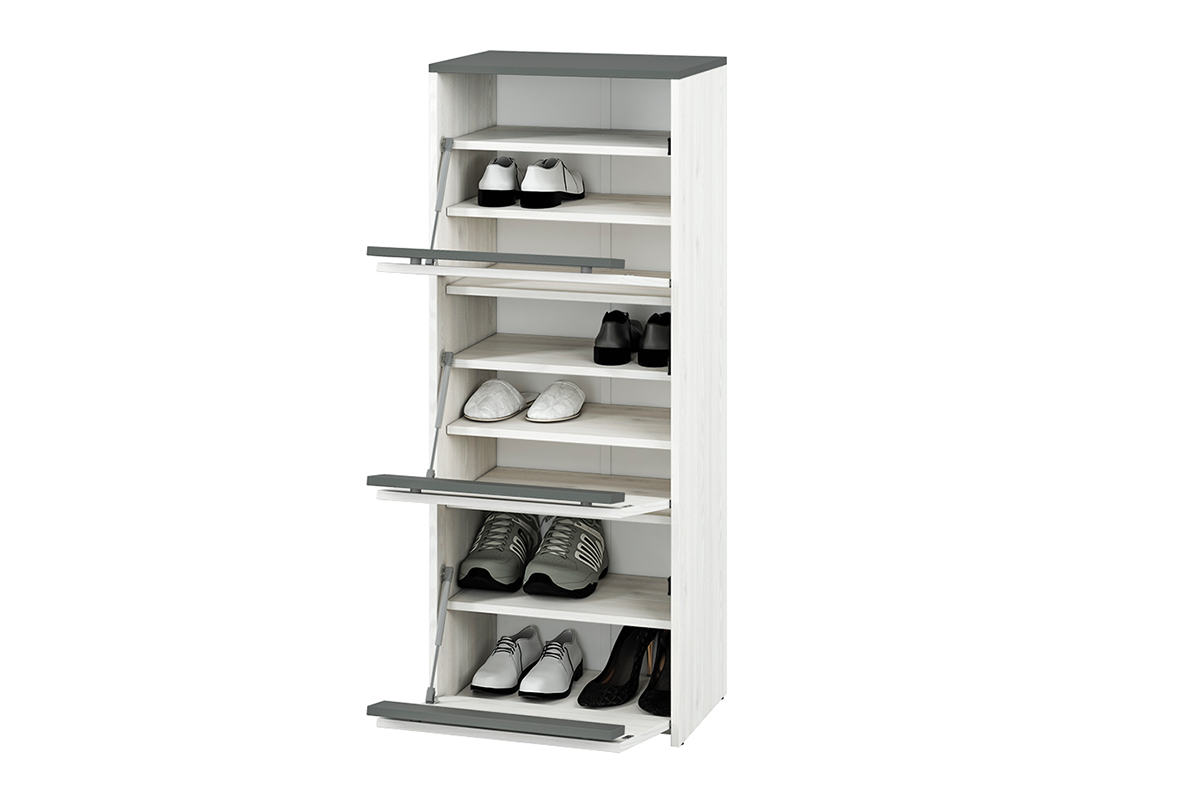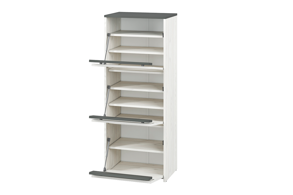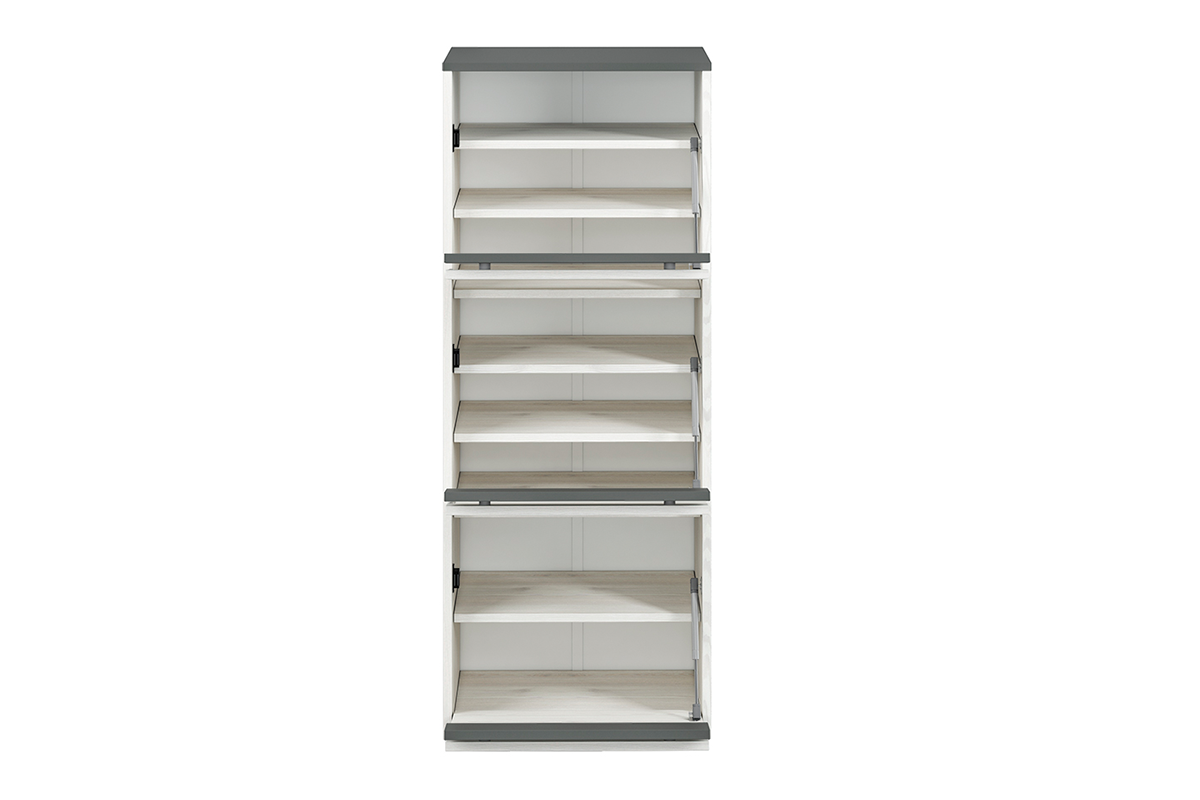 CALLA zobacz całą kolekcję Wysoka szafka na buty z półkami do przedpokoju biała / szara- kolor biały/szary