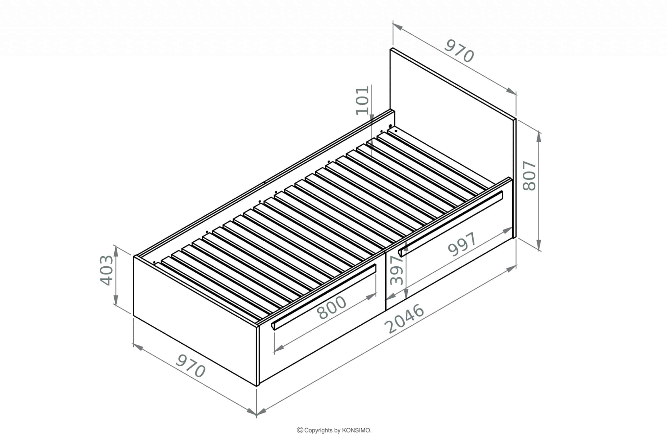 dla produktu Łóżko ze stelażem i szufladami do pokoju dziecięcego biały / szary / buk