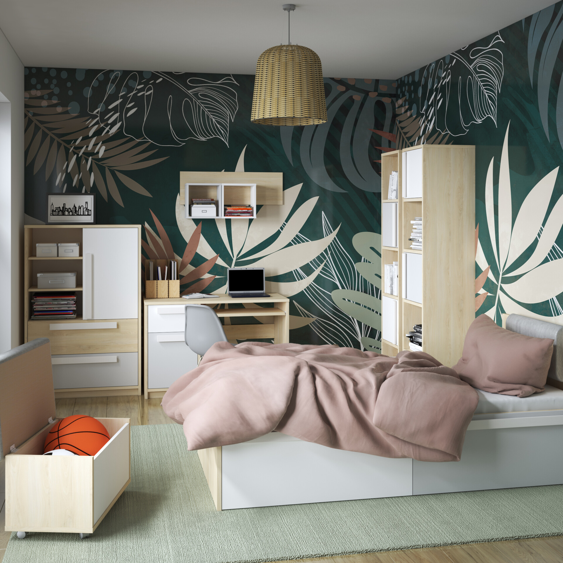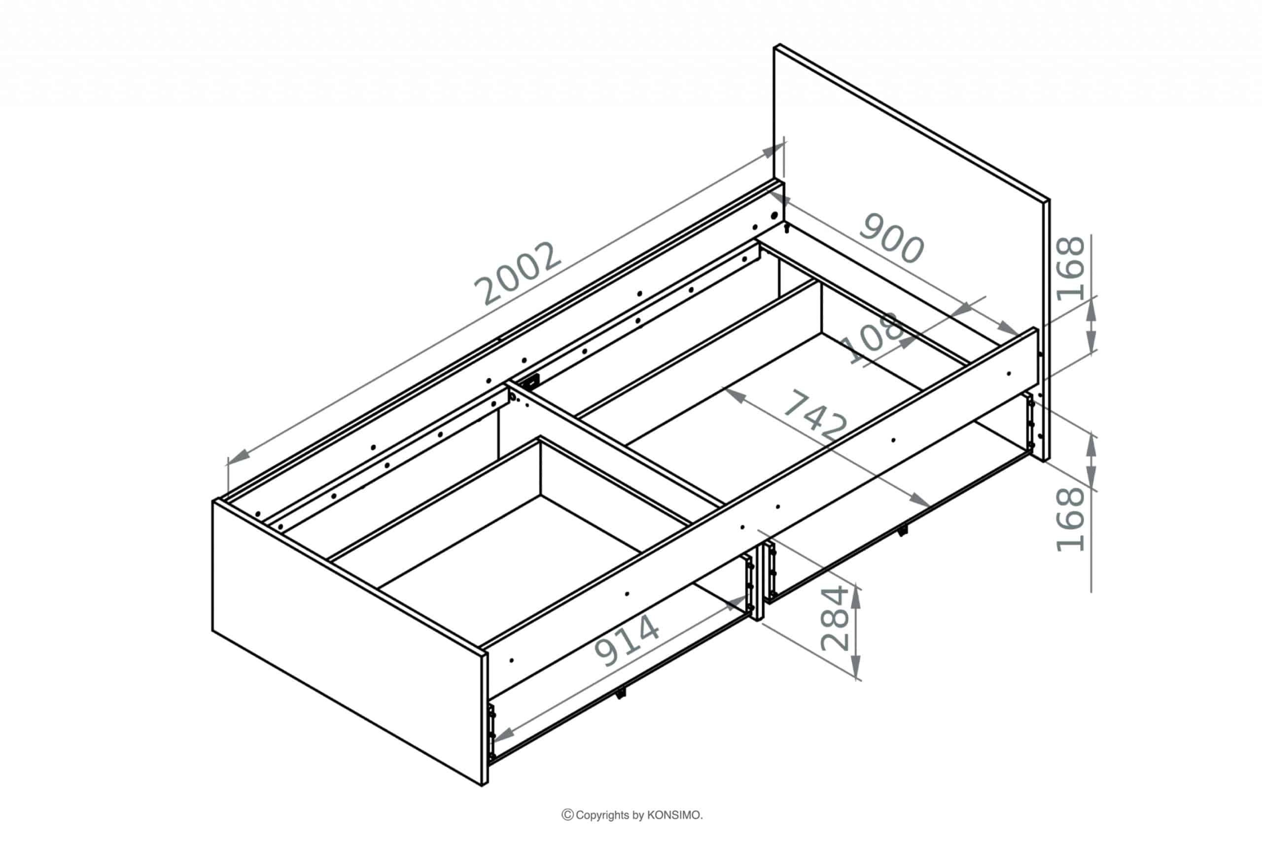 Opcjonalnie zastawka do łóżka 11070.18.954 i 11070.19.954 oraz zagłówek tapicerowany 11070.20.054.Dzięki swojemu niepowtarzalnemu designowi, łóżko ze stelażem z kolekcji PONGO wspaniale wpisze się w klimat zarówno pokoju młodzieżowego jak i dziecięcego. Wyposażone zostało w duże, pojemne szuflady oparte na cichych prowadnicach kulkowych, w których w wygodny sposób przechowasz pościel, koce czy poduszki. Oryginalne, geometryczne uchwyty w kolorze bieli doskonale współgrają z gładkimi frontami.