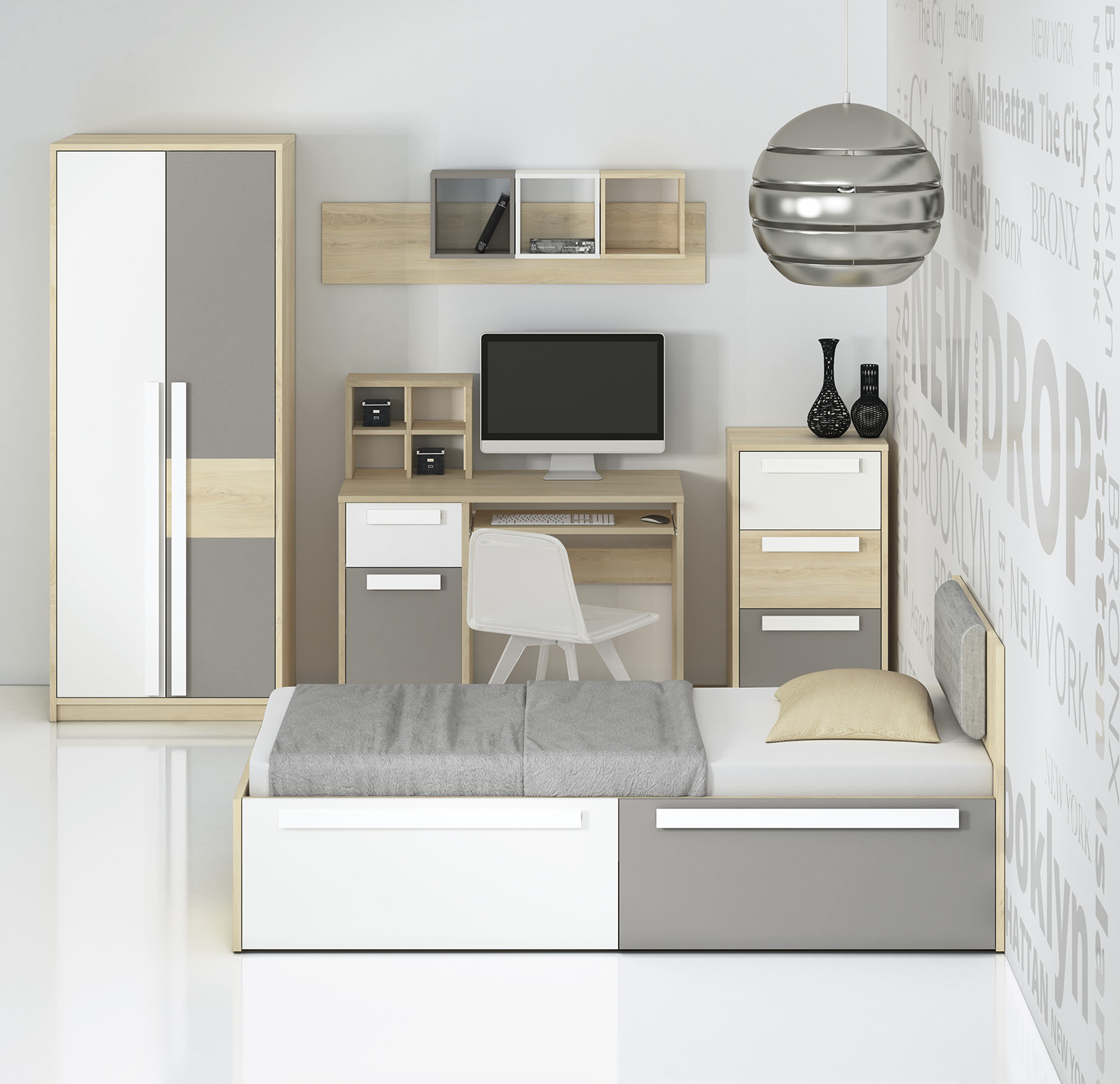 PONGO Łóżko ze stelażem i szufladami do pokoju dziecięcego biały / szary / buk