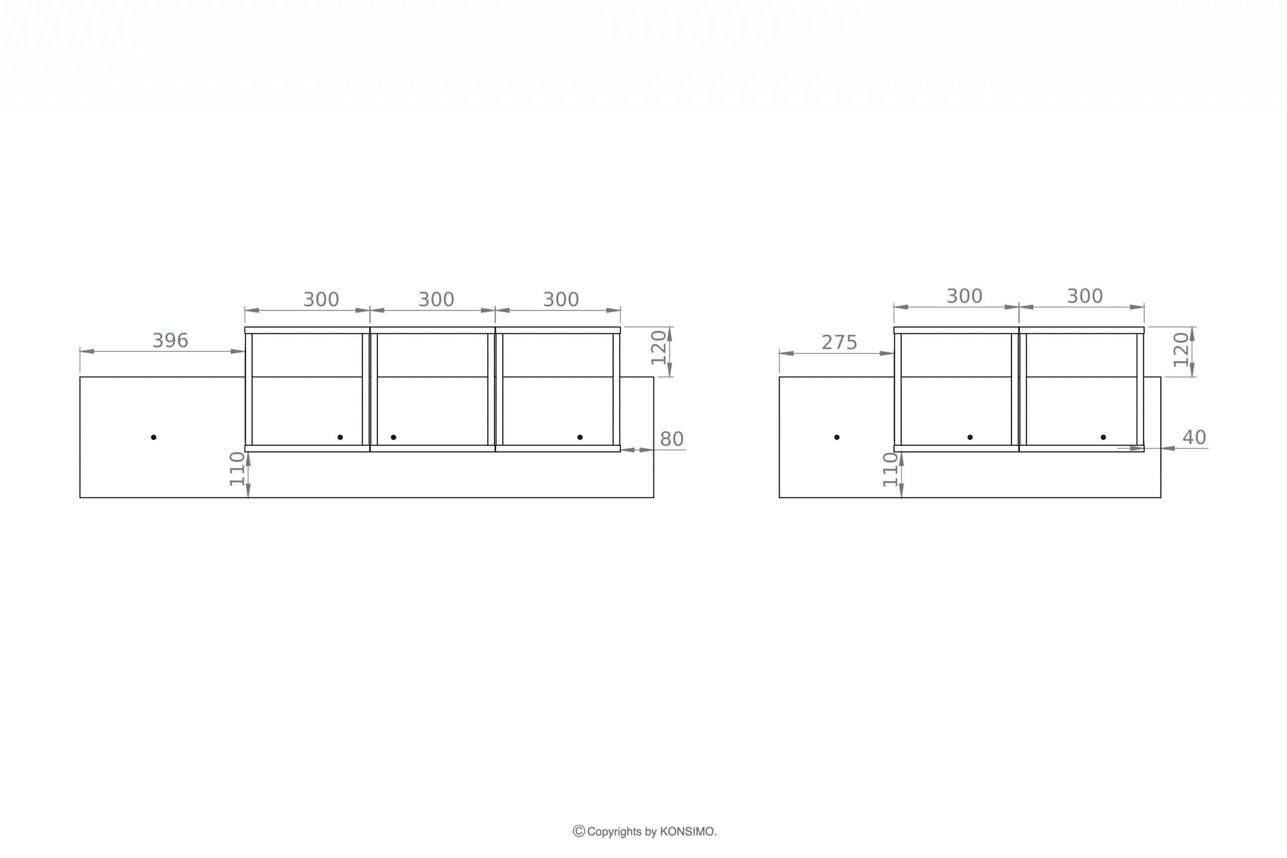 Półki PONGO można połączyć z panelami z tej samej kolekcji tworząc ciekawe aranżacje.