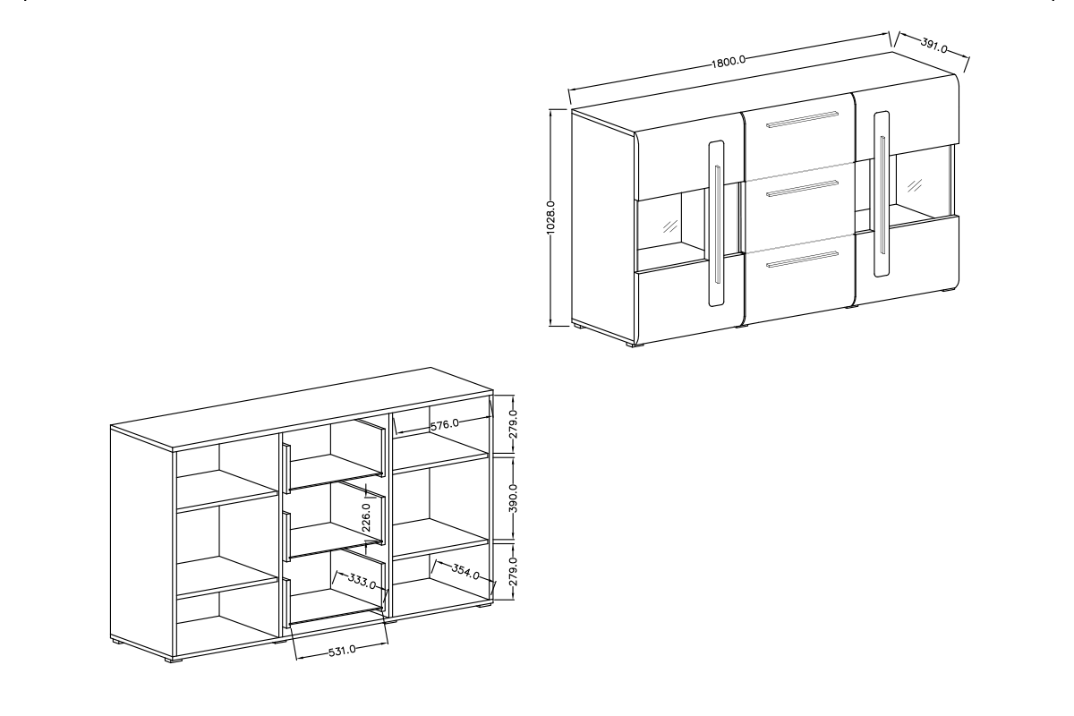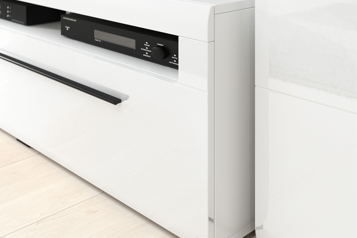 Opcjonalne oświetlenie LED 11094.16.100.Na środku znajdują się jeszcze 3 pojemne szuflady – zapewniono do nich pełen dostęp poprzez zastosowanie prowadnicy z pełnym wysuwem, dzięki czemu nie stanowi problemu sięgnięcie nawet w najdalsze zakamarki komody. Z kolei o solidnym wykonaniu może świadczyć zastosowanie folii membranowej, metalowych uchwytów czy też puszkowych zawiasów.W tym modelu do wyboru są dwie wersje kolorystyczne – biały laminat z wysokim połyskiem zapewniający wrażenie optycznego powiększenia pokoju oraz dąb naturalny, który nadaje wnętrzom ciepły i nad wyraz przytulny charakter.