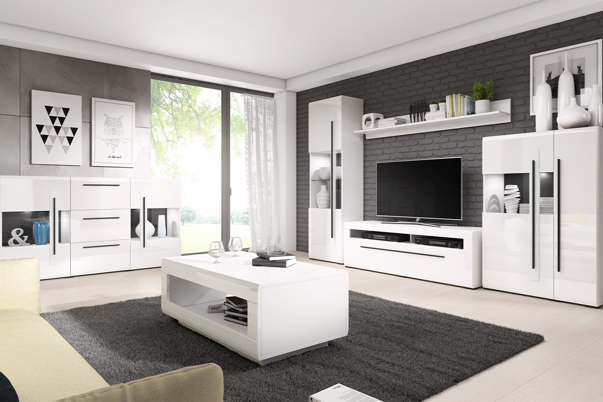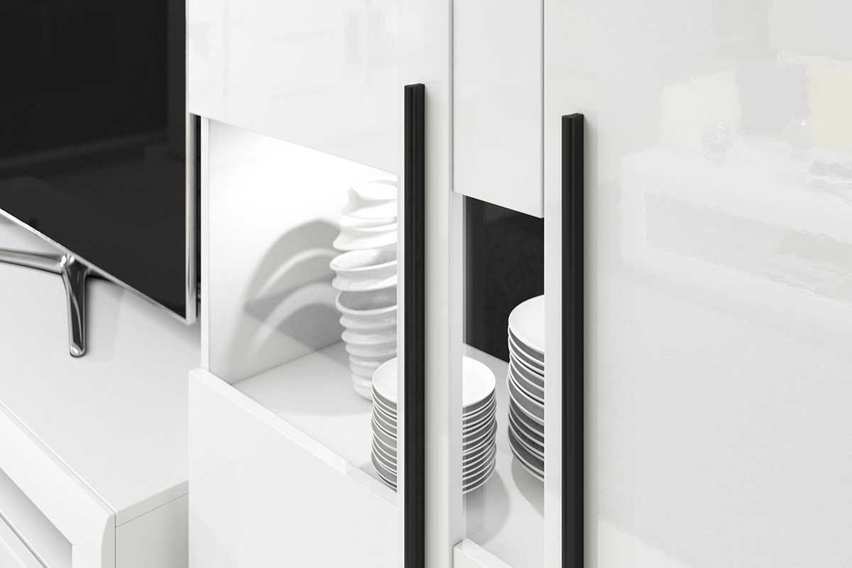 TULSA zobacz całą kolekcję Komoda z witryną 180 cm w stylu modern biały połysk- kolor biały połysk