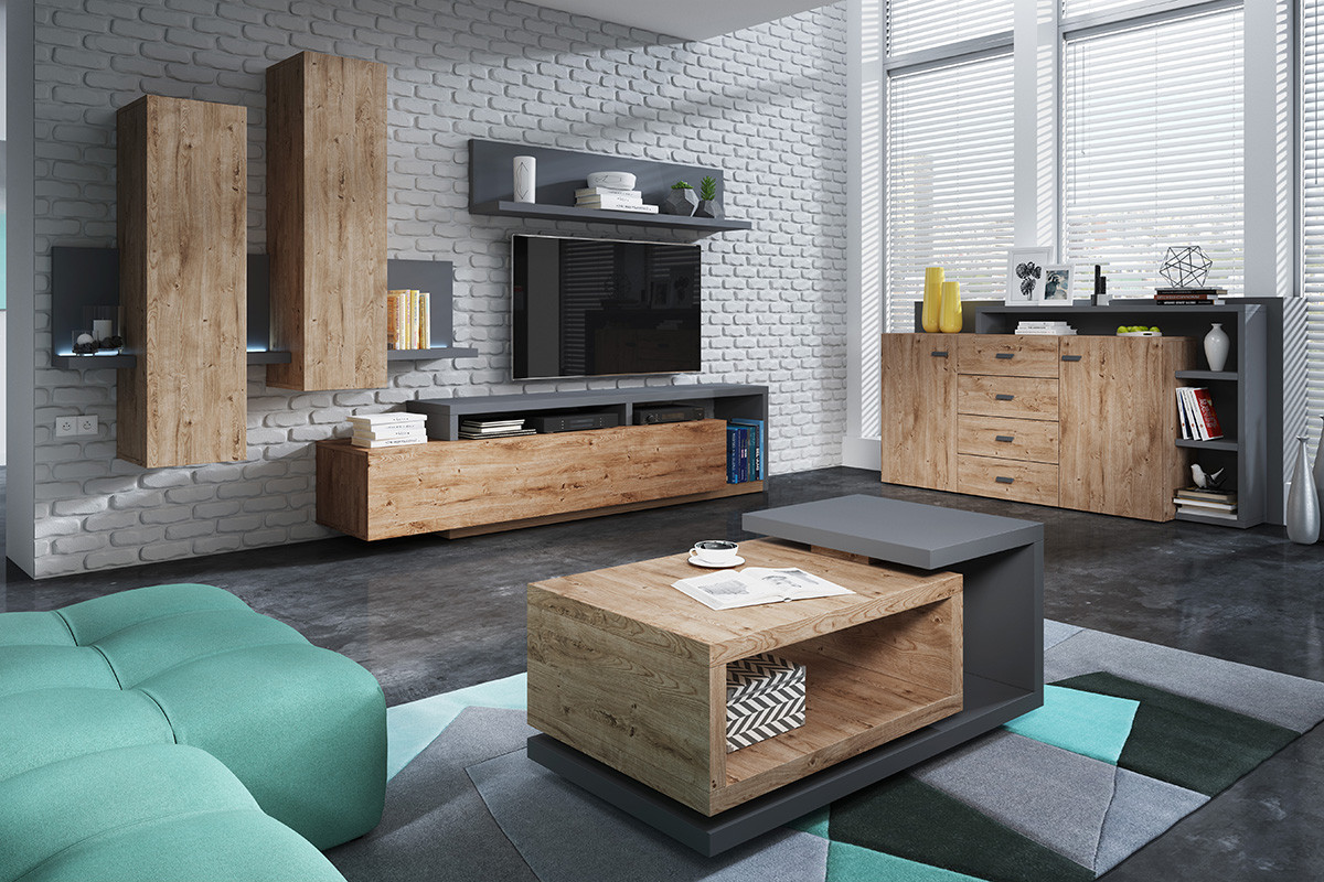BOTA zobacz całą kolekcję Szafka wisząca w stylu modern szara / dąb- kolor dąb ribbec/antracyt