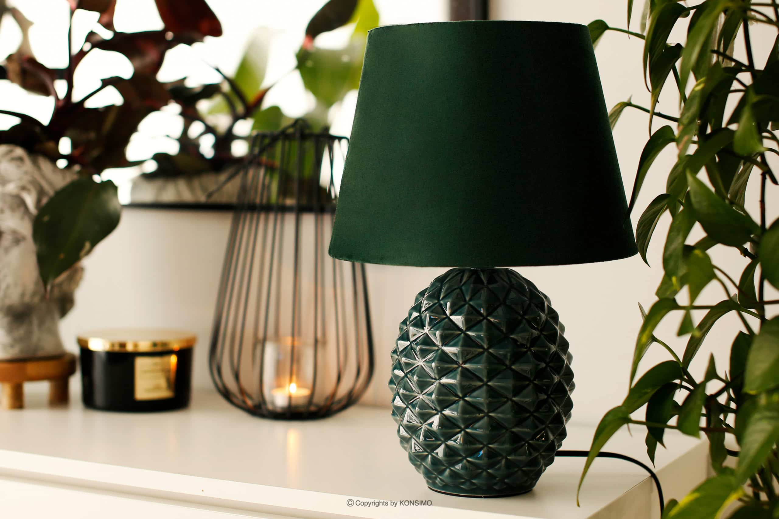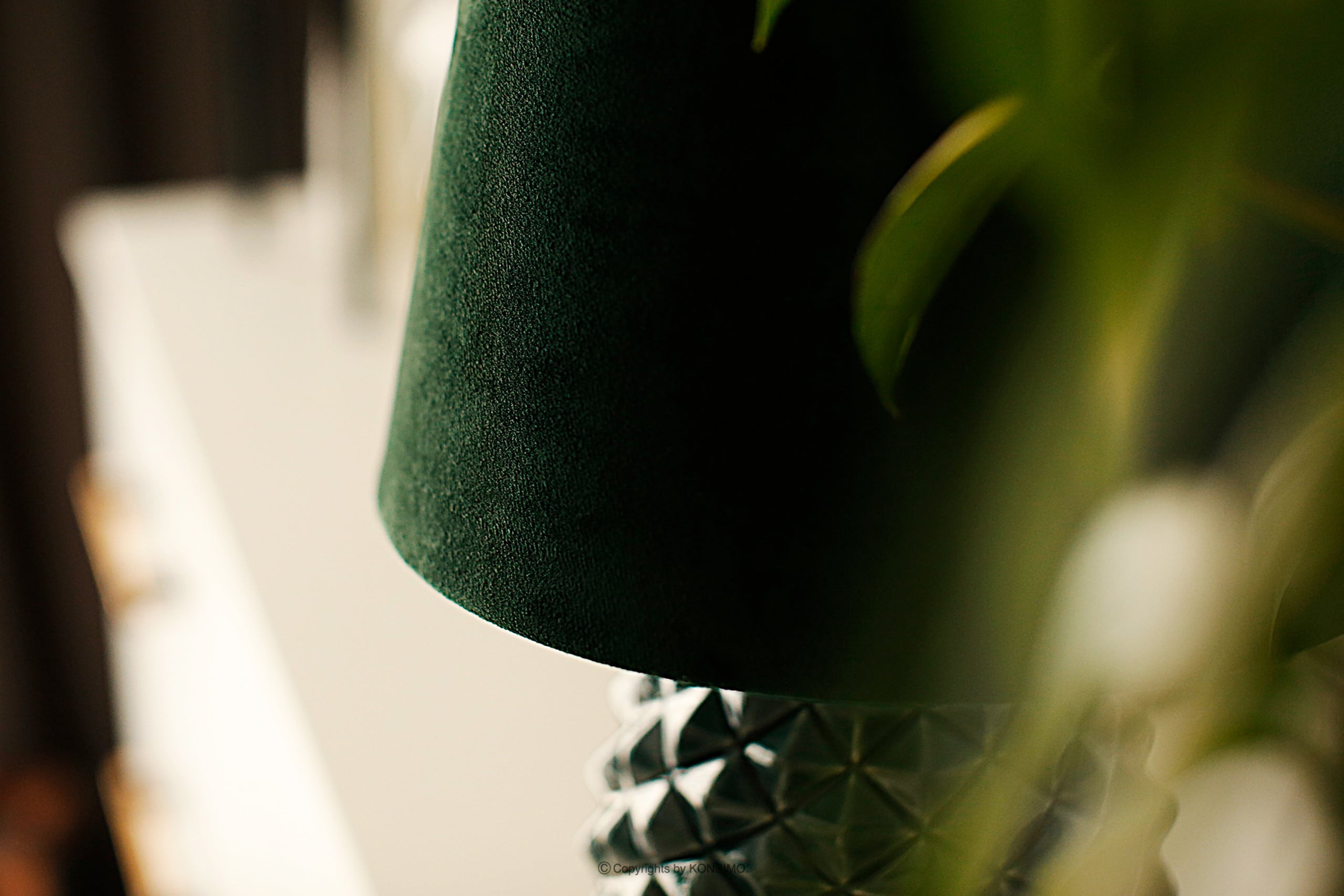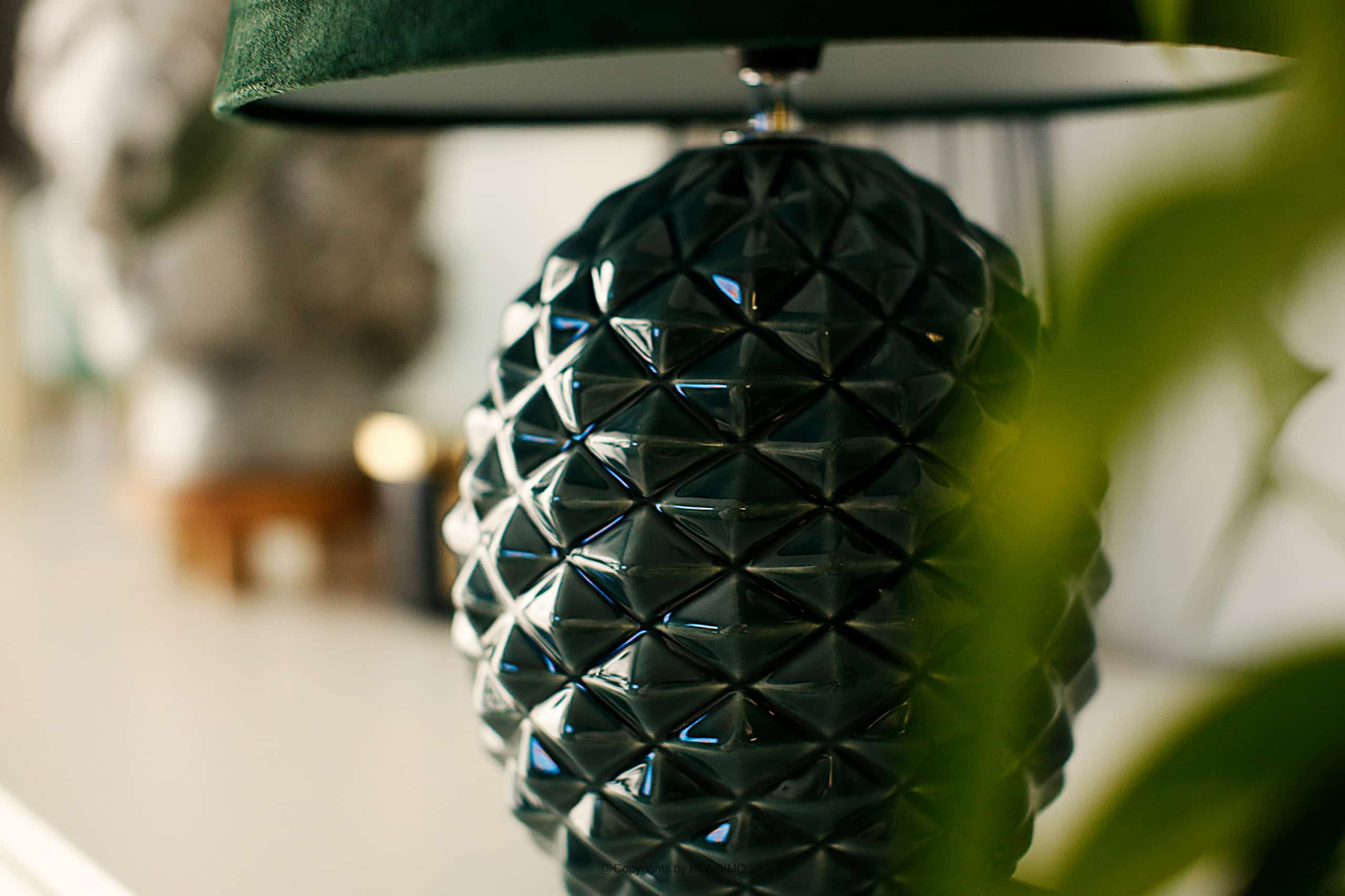 Zielona lampa stołowa to elegancki i stylowy dodatek do wystroju wnętrza. Lampa stołowa FRUCTU posiada ozdobną podstawę wykonaną z ceramiki. Jest bardzo elegancka i pięknie ozdobi przestrzeń w salonie, sypialni, czy na korytarzu. Kolor butelkowej zieleni dopasuje się do wielu wnętrz, np. w stylu nowoczesnym, loftowym i eleganckim.