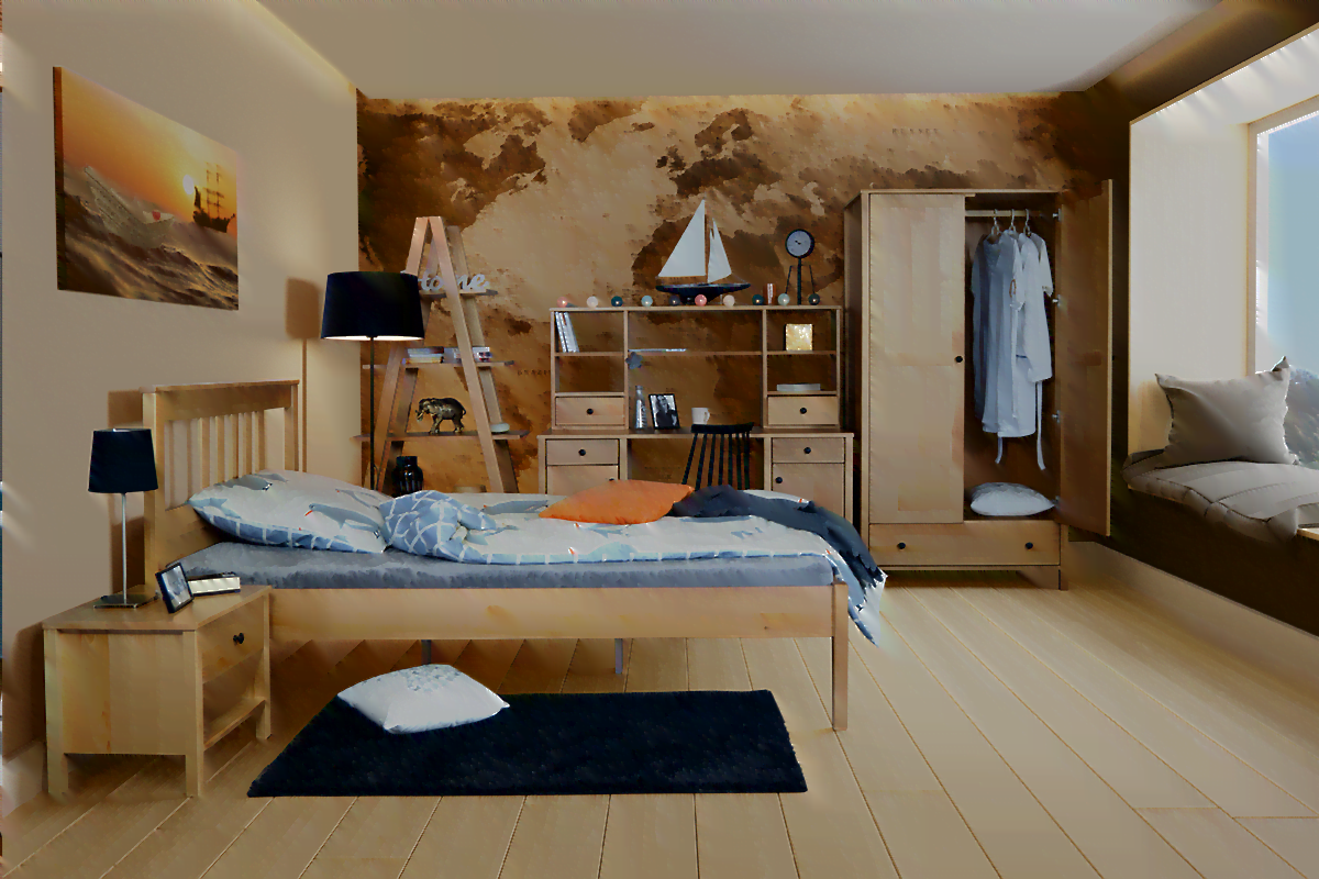 Ogromnym jego atutem jego obszerny blat, który zapewnia potrzebną do pracy przestrzeń. Całość zbudowana jest z wyselekcjonowanego, bezsękowego drewna sosnowego i dostępna jest w dwóch modnych kolorach: naturalnego drewna oraz białym.