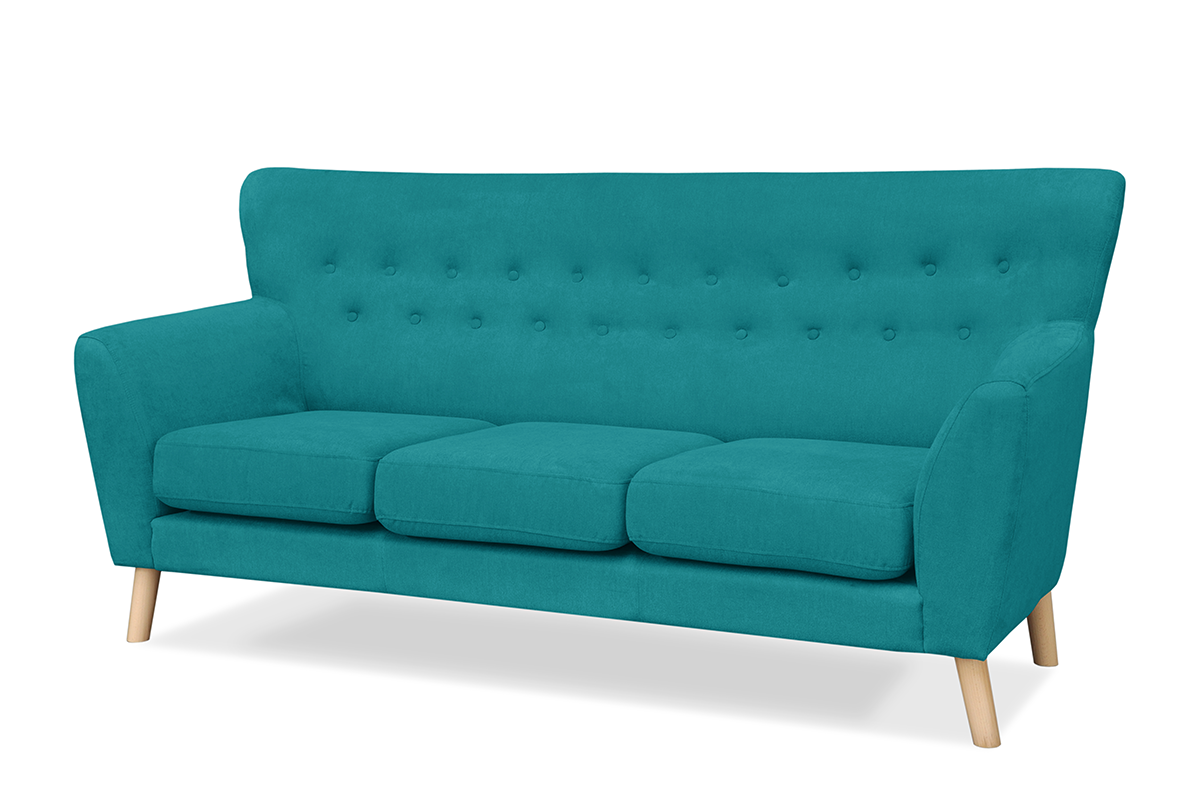 NEBRIS zobacz całą kolekcję Skandynawska sofa na nóżkach 3 osobowa turkusowa- kolor turkusowy