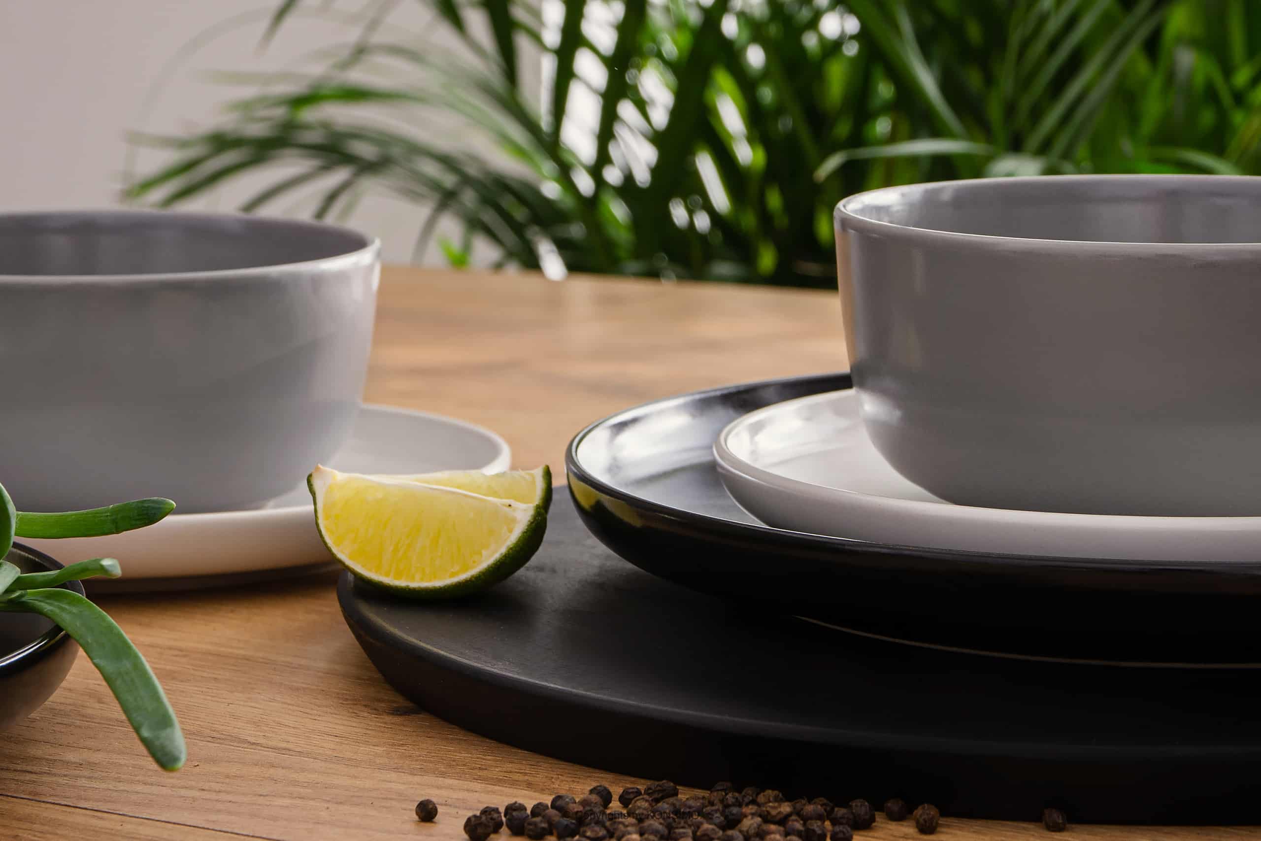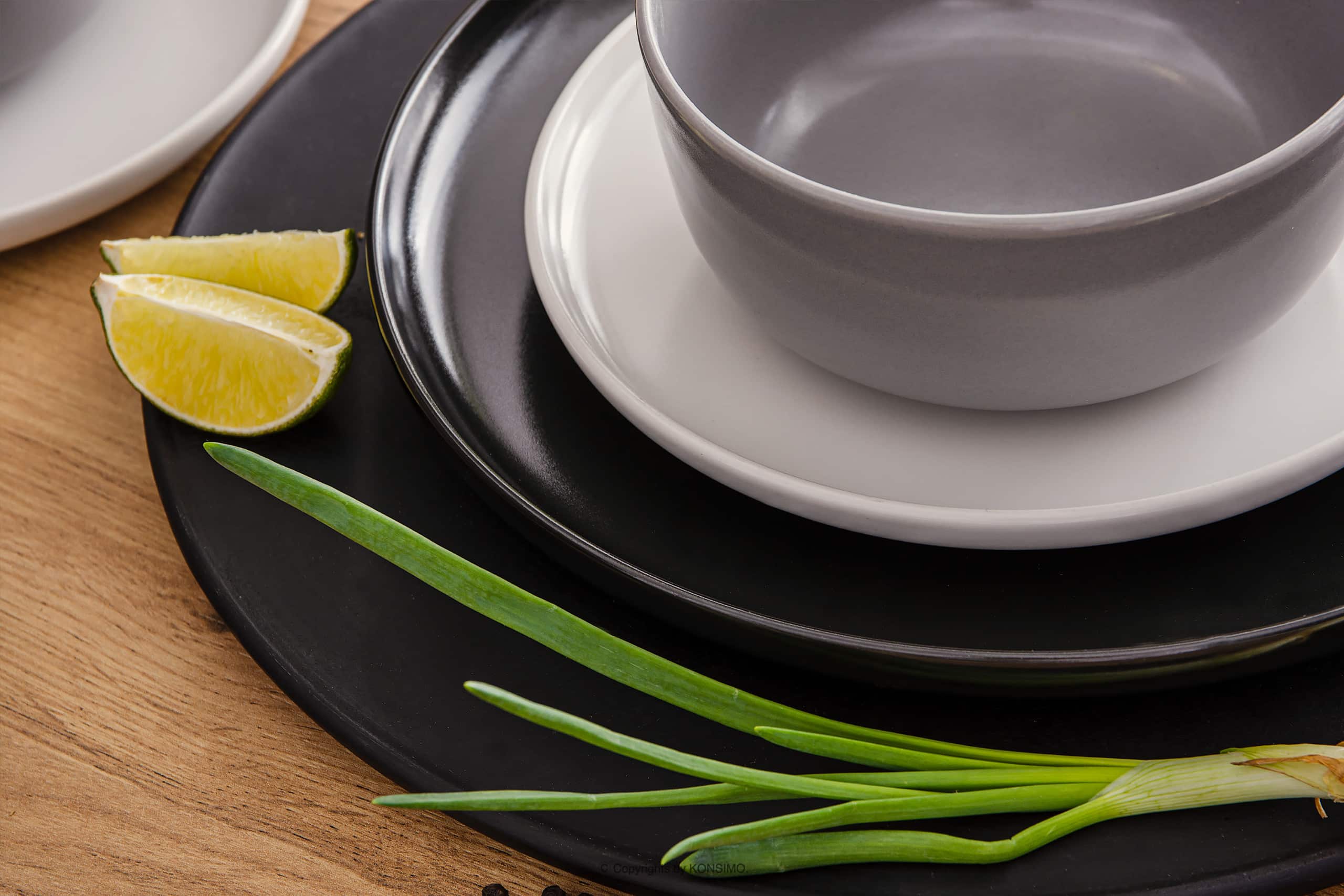 VICTO zobacz całą kolekcję Zestaw obiadowy biały czarny szary 6os. (18 el.)- kolor biały/czarny/szary