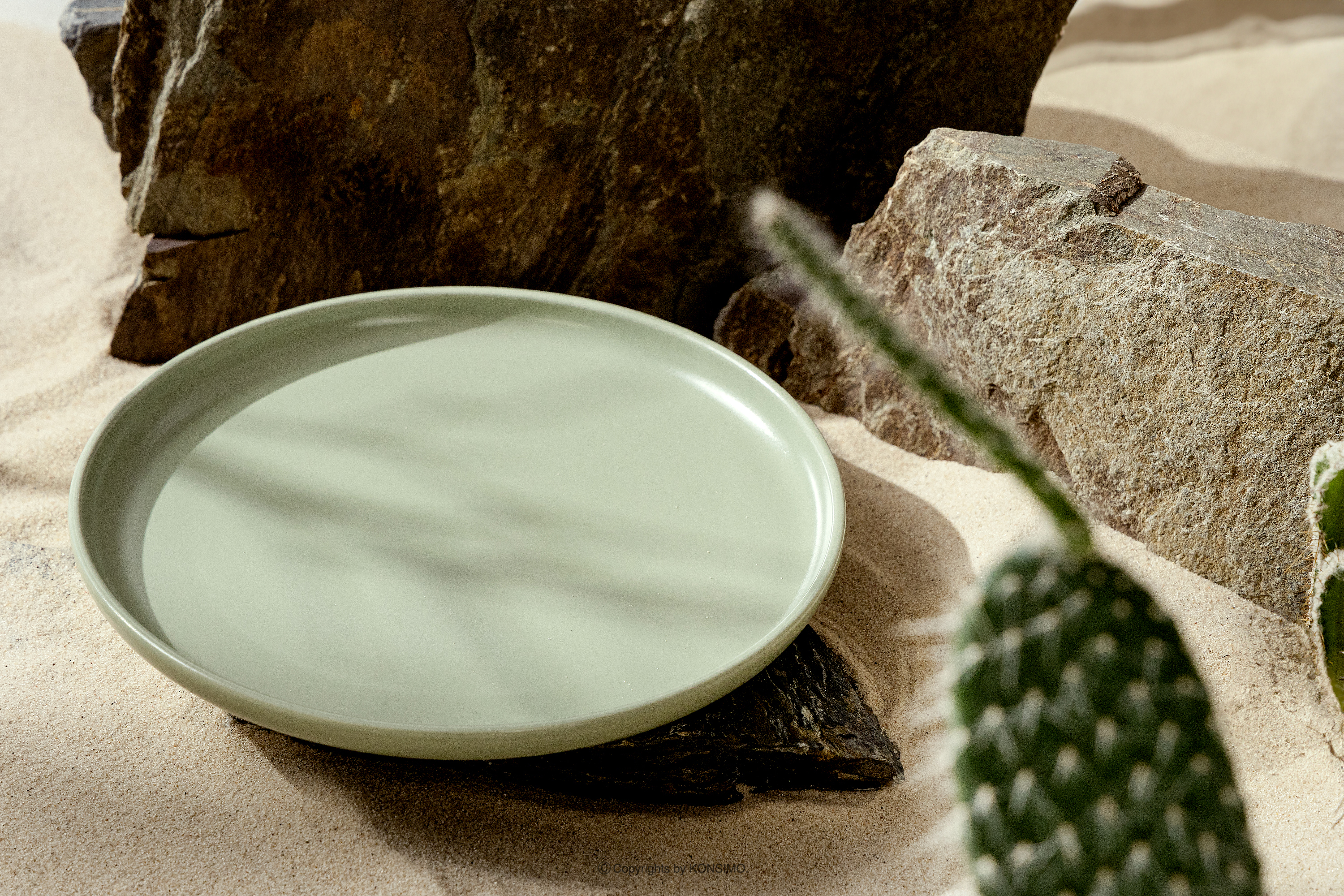 Pistacjowy zestaw obiadowy 6os. (18 el.) wyprodukowany z najwyższej jakości ceramiki, przyciąga uwagę swoją niezwykłą elegancją oraz niepodważalną odpornością na wszelkie potencjalne uszkodzenia. Matowe wykończenie i minimalistyczne, okrągłe kształty nadają wyjątkowy charakter, co sprawia, że doskonale komponuje się zarówno w nowoczesnych, loftowych wnętrzach, jak i w tradycyjnych aranżacjach jadalnianych. To niezwykłe połączenie stylu i funkcjonalności sprawia, że ten zestaw jest doskonałym wyborem zarówno na elegancki stół podczas uroczystych okazji, jak i w codziennym użytkowaniu, gdzie podkreśla wyjątkowy smak i styl życia.