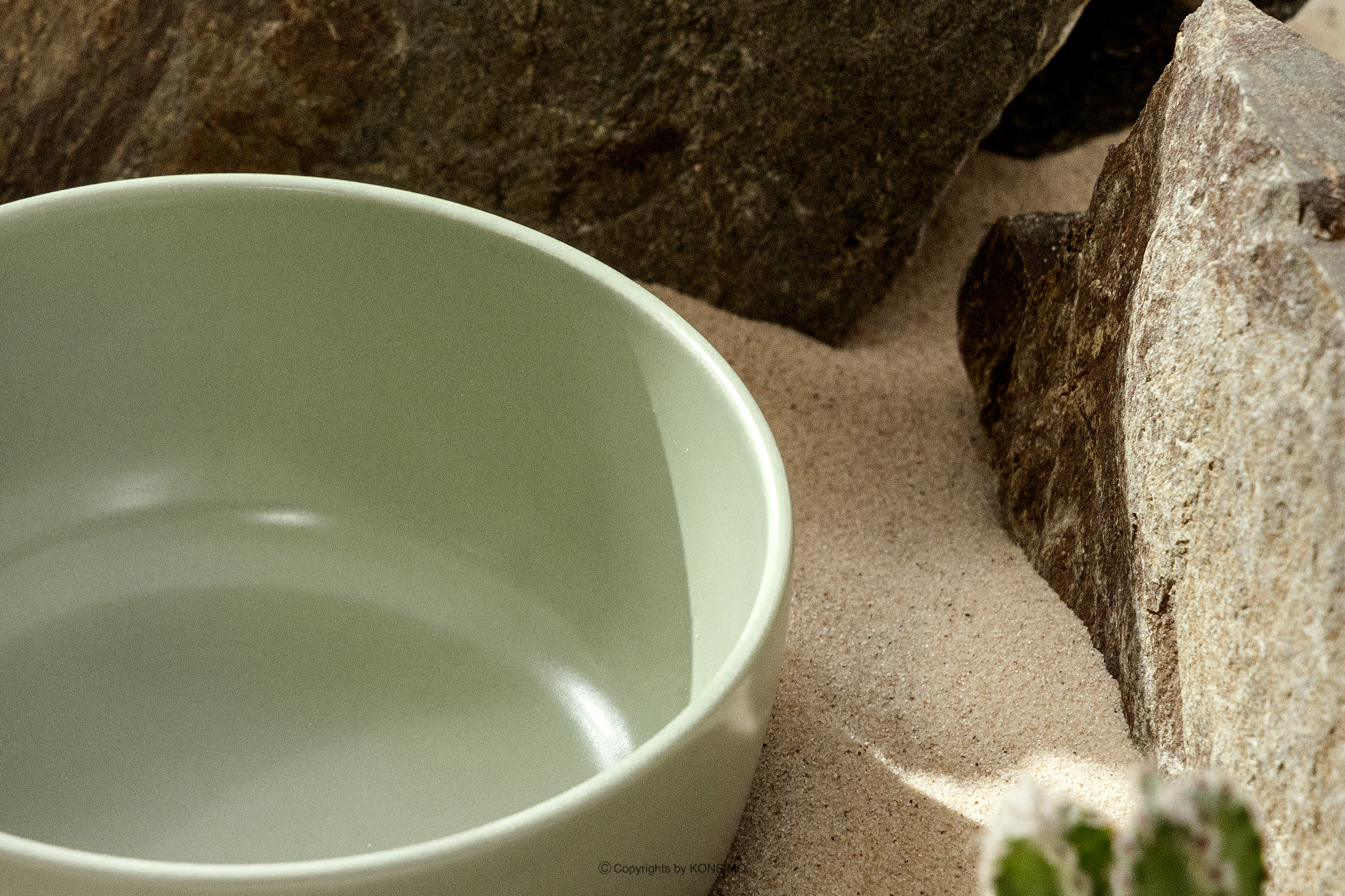 Zestaw misek pistacjowych 6szt., będący efektem produkcji z wyjątkowej ceramiki spełniającej najwyższe standardy jakości, przyciąga uwagę swoją wyjątkową elegancją, jednocześnie wykazując niezwykłą odporność na wszelkie potencjalne uszkodzenia. Matowe wykończenie oraz minimalistyczne, okrągłe kształty nadają wyjątkowy i uniwersalny charakter, co sprawia, że perfekcyjnie komponuje się zarówno w nowoczesnych, loftowych, jak i tradycyjnych aranżacjach wnętrz jadalnianych.