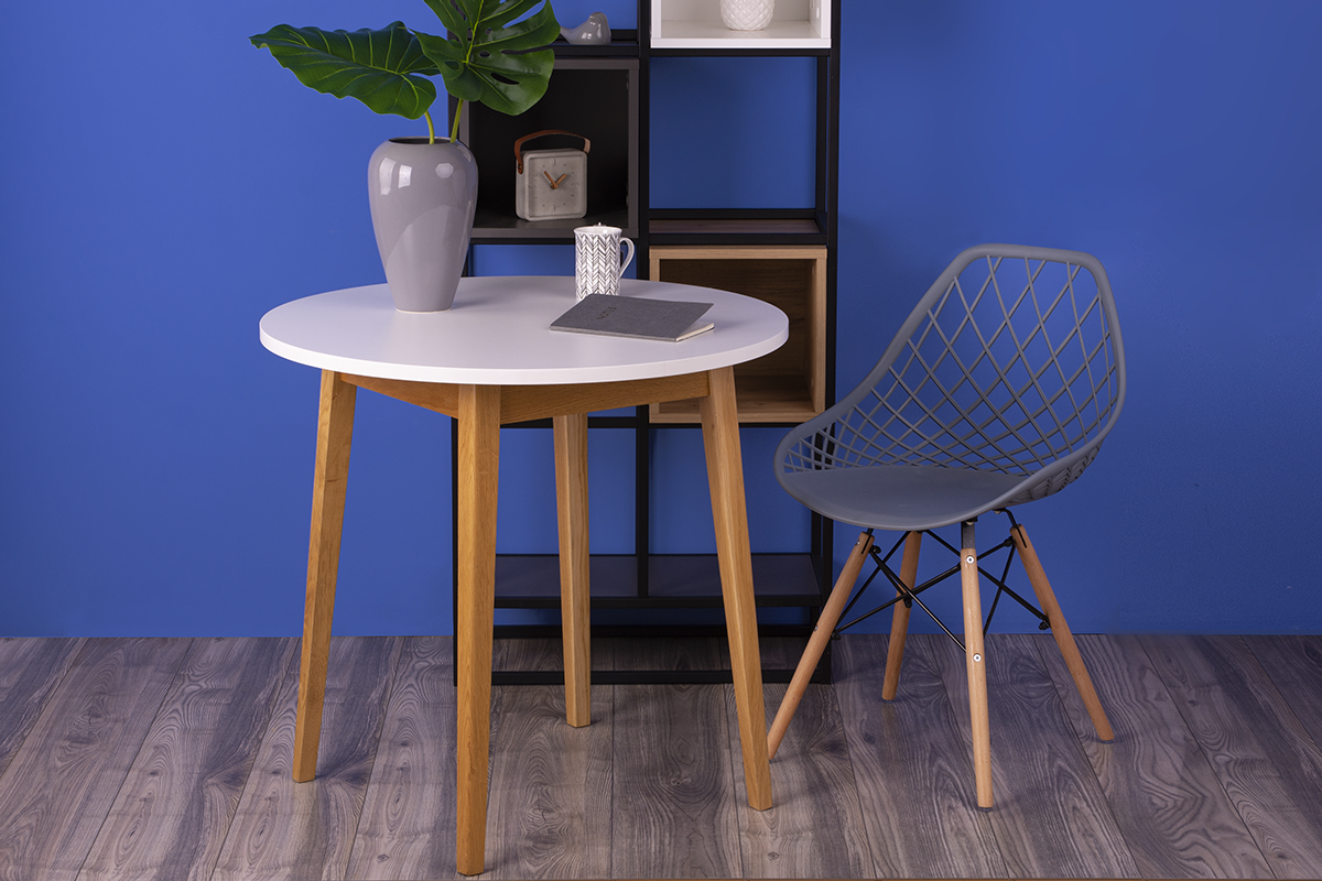 Nowoczesne krzesło z kolekcji FAGIS. Model przyciąga uwagę dzięki oryginalnemu siedzisku, sprawiającemu wrażenie lekkiego i delikatnego. Siedzisko jest jednocześnie odpowiednio wyprofilowane, a wykonane z trwałych materiałów o wzmocnionej odporności na uszkodzenia. To idealne rozwiązanie dla wszystkich, którzy cenią sobie unikatowy design z prawdziwą wygodą.