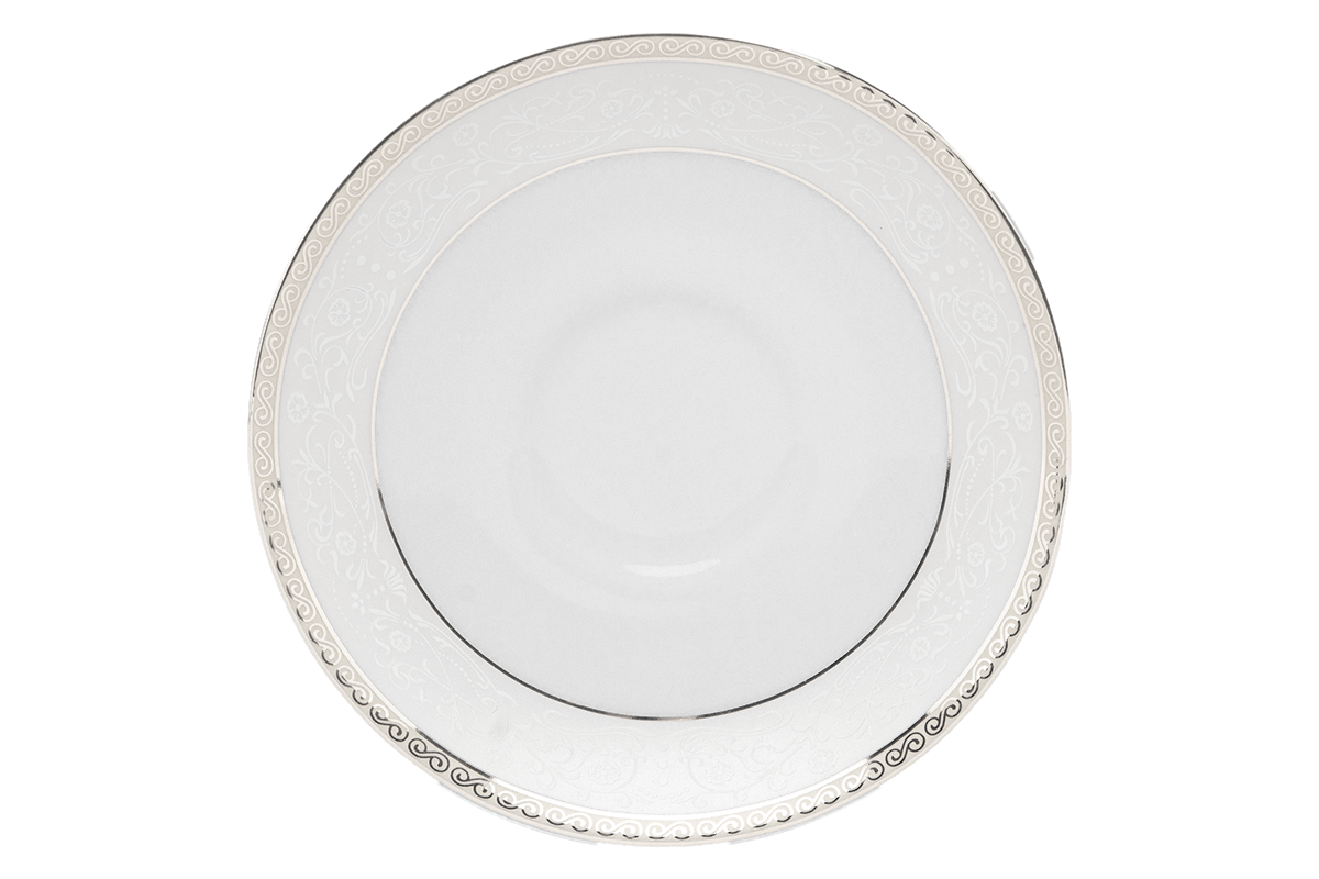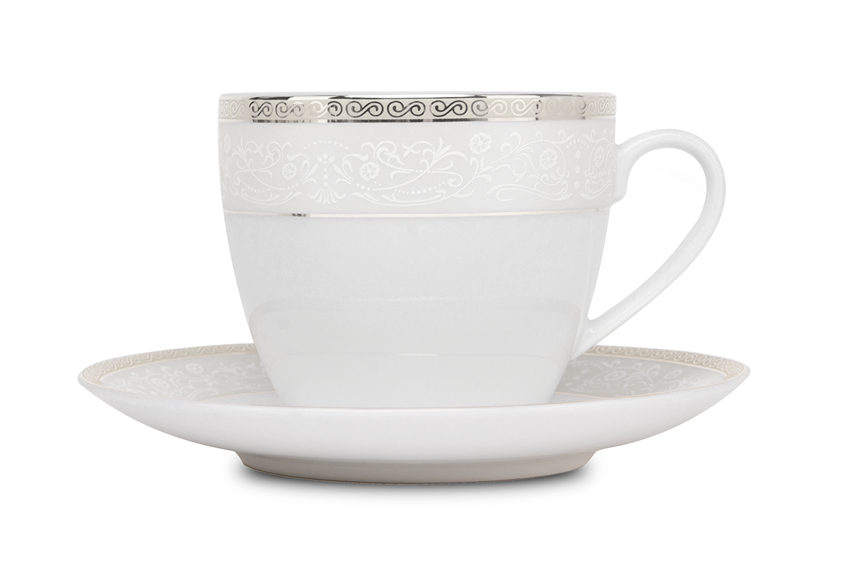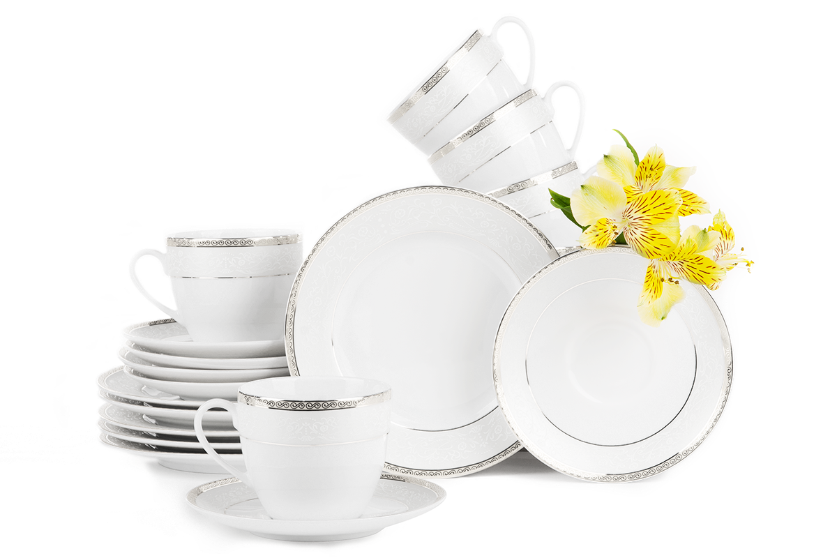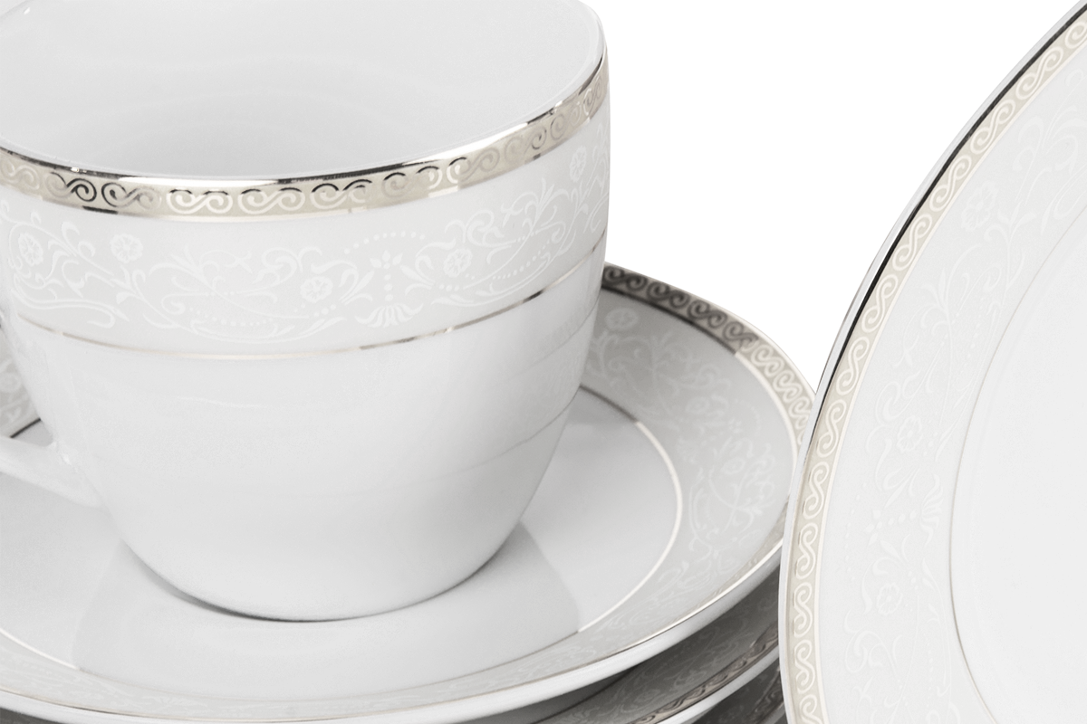AGAWA PLATIN Serwis herbaciany polska porcelana 12 elementów biały / platynowy wzór dla 6 os.