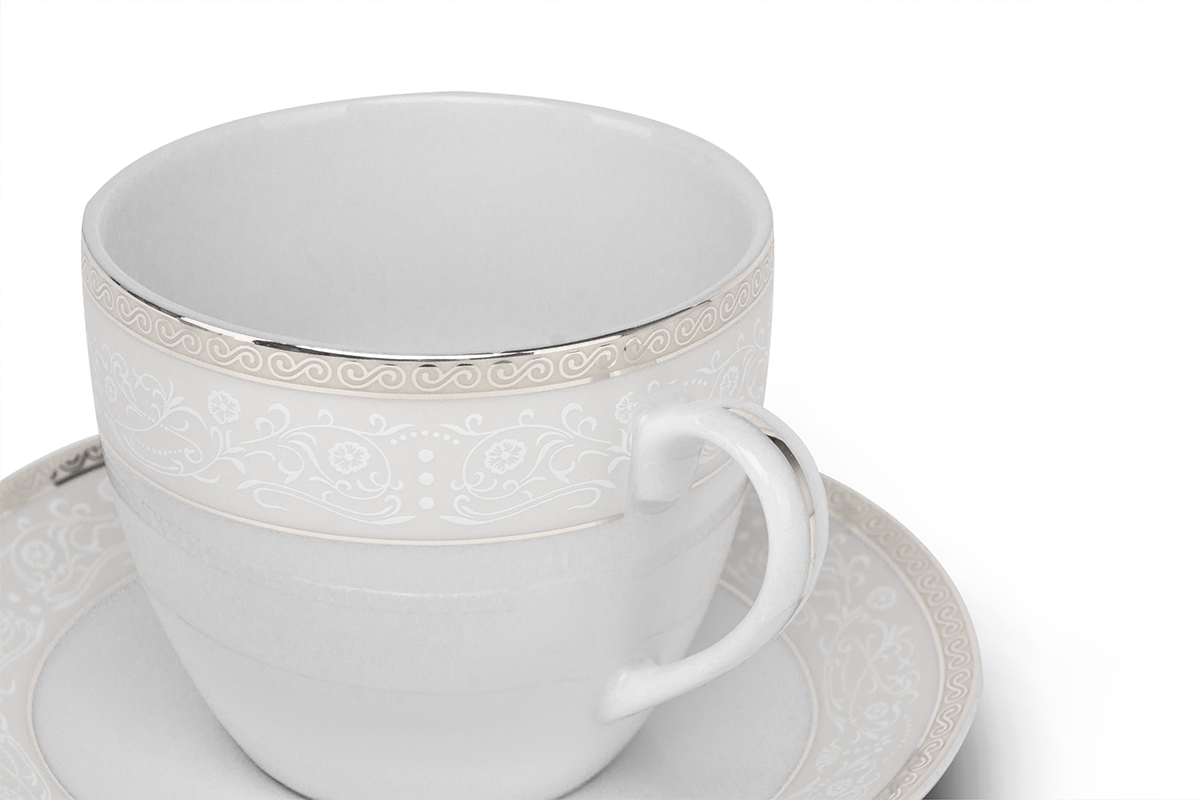 AGAWA PLATIN zobacz całą kolekcję Serwis herbaciany polska porcelana 12 elementów biały / platynowy wzór dla 6 os.- kolor Platin