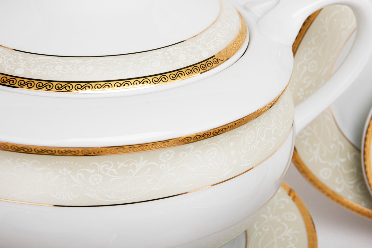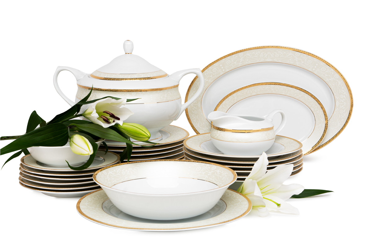 dla produktu Serwis obiadowy polska porcelana 25 elementów biały / złoty wzór dla 6 os.