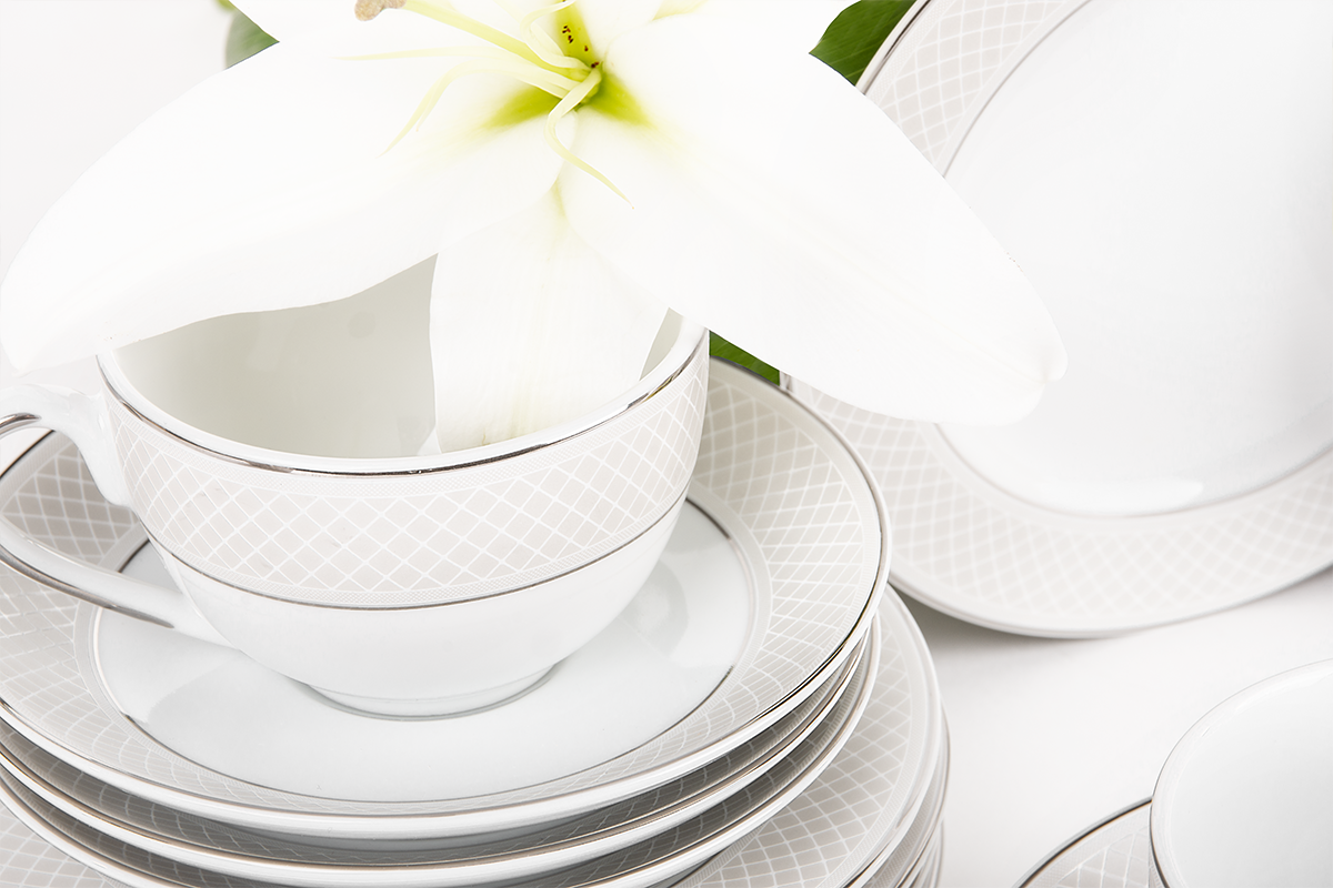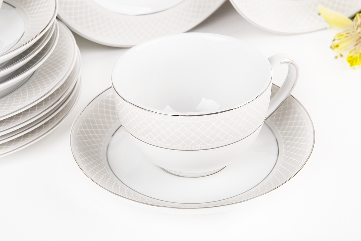 SCANIA zobacz całą kolekcję Serwis herbaciany polska porcelana 15 elementów biały / platynowy wzór dla 6 os.- kolor Platin