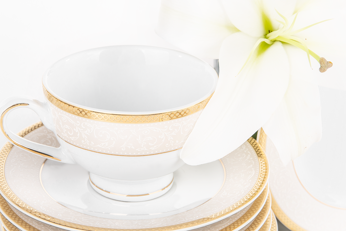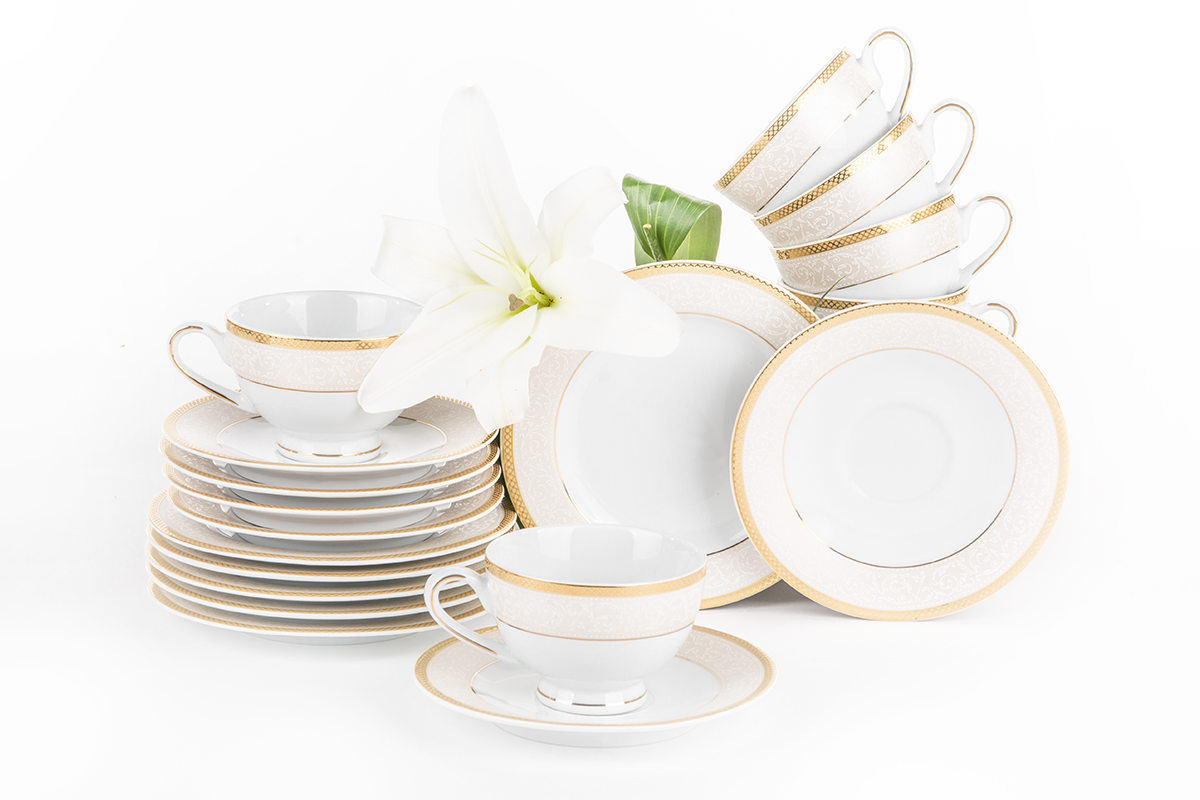 dla produktu Serwis herbaciany polska porcelana 6 os. 12 elementów biały / złoty wzór