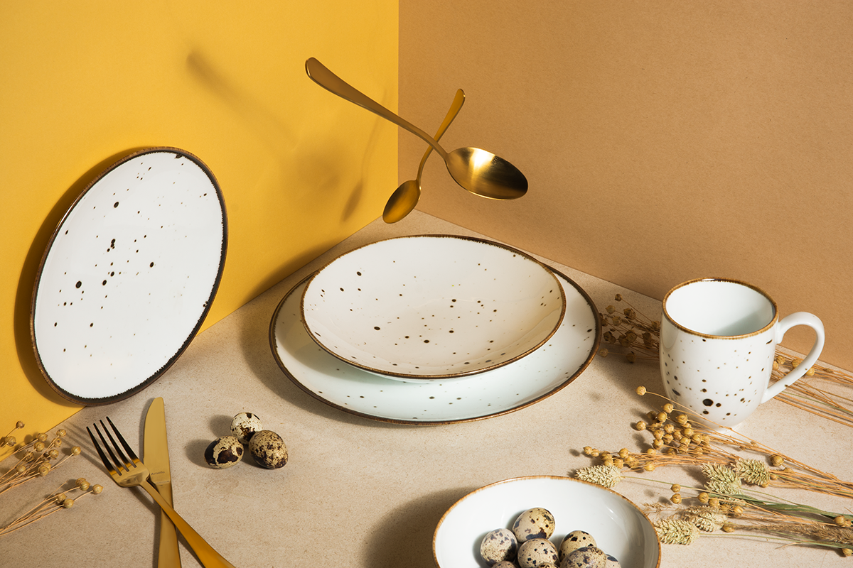 Wysoka zawartość ALUMINA (tlenku glinu-korundu) zwiększająca o ponad 40 % wytrzymałość porcelany ALUMINA na pęknięcia płaszczyzny i ubicia brzegów w porównaniu z tradycyjną porcelaną kaolinową, przy jednoczesnym zachowaniu odporności na zmiany temperatury użytkowej. Wysoka temperatura wypału surowców i szkliwa zapewniająca zwartą strukturę produktu i likwidująca jego porowatość i nasiąkliwość oraz zwiększająca odporność powierzchni szkliwa na pęknięcia i zarysowania.