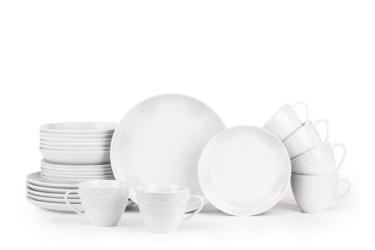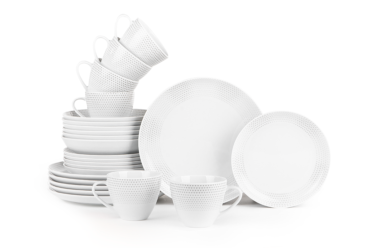 dla produktu Serwis obiadowo-kawowy polska porcelana 6 os. 24 elementy Biały / wzór trójkątów