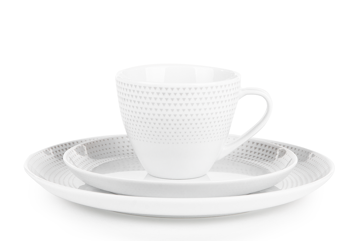 NORA TRÓJKĄTY zobacz całą kolekcję Serwis obiadowo-kawowy polska porcelana 6 os. 24 elementy Biały / wzór trójkątów- kolor Trójkąty