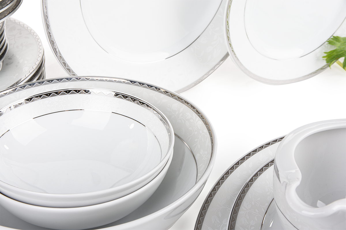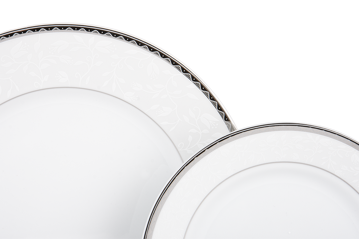 AMELIA PLATYNA zobacz całą kolekcję Zestaw obiadowy porcelana 24 elementy biały / platynowy wzór dla 6 os.- kolor Platyna