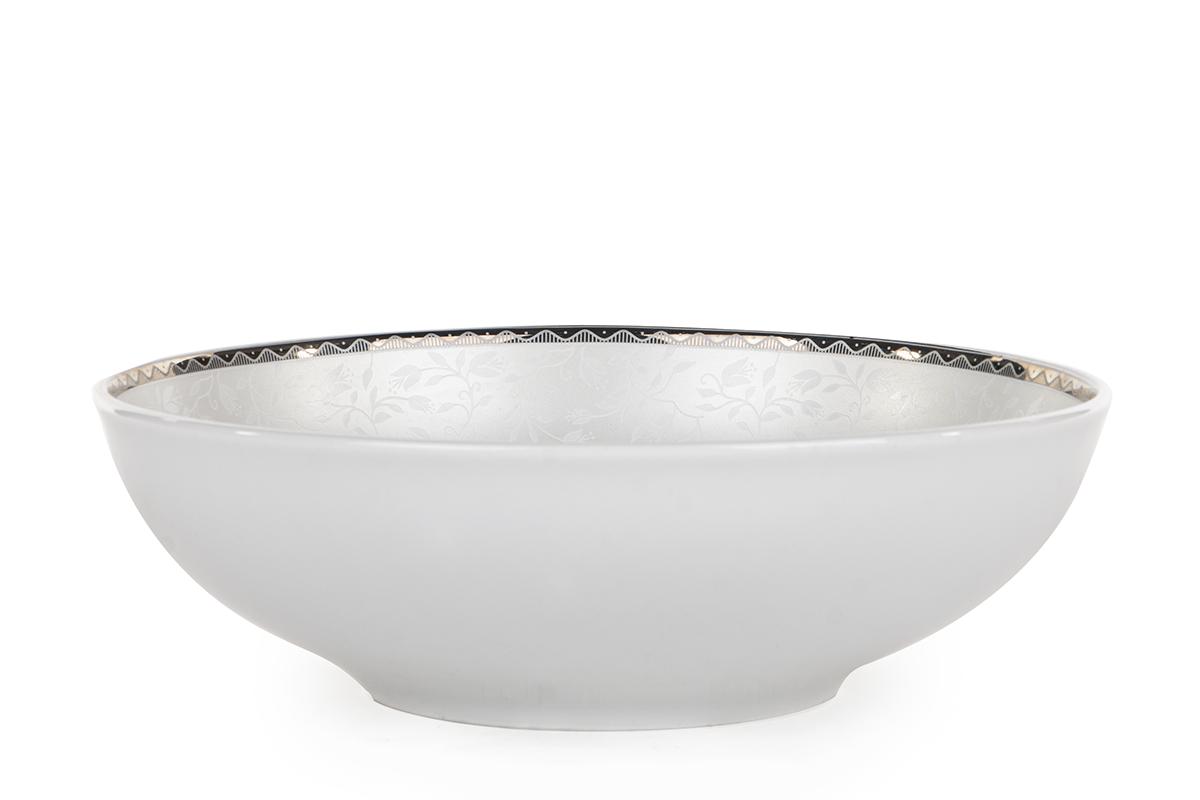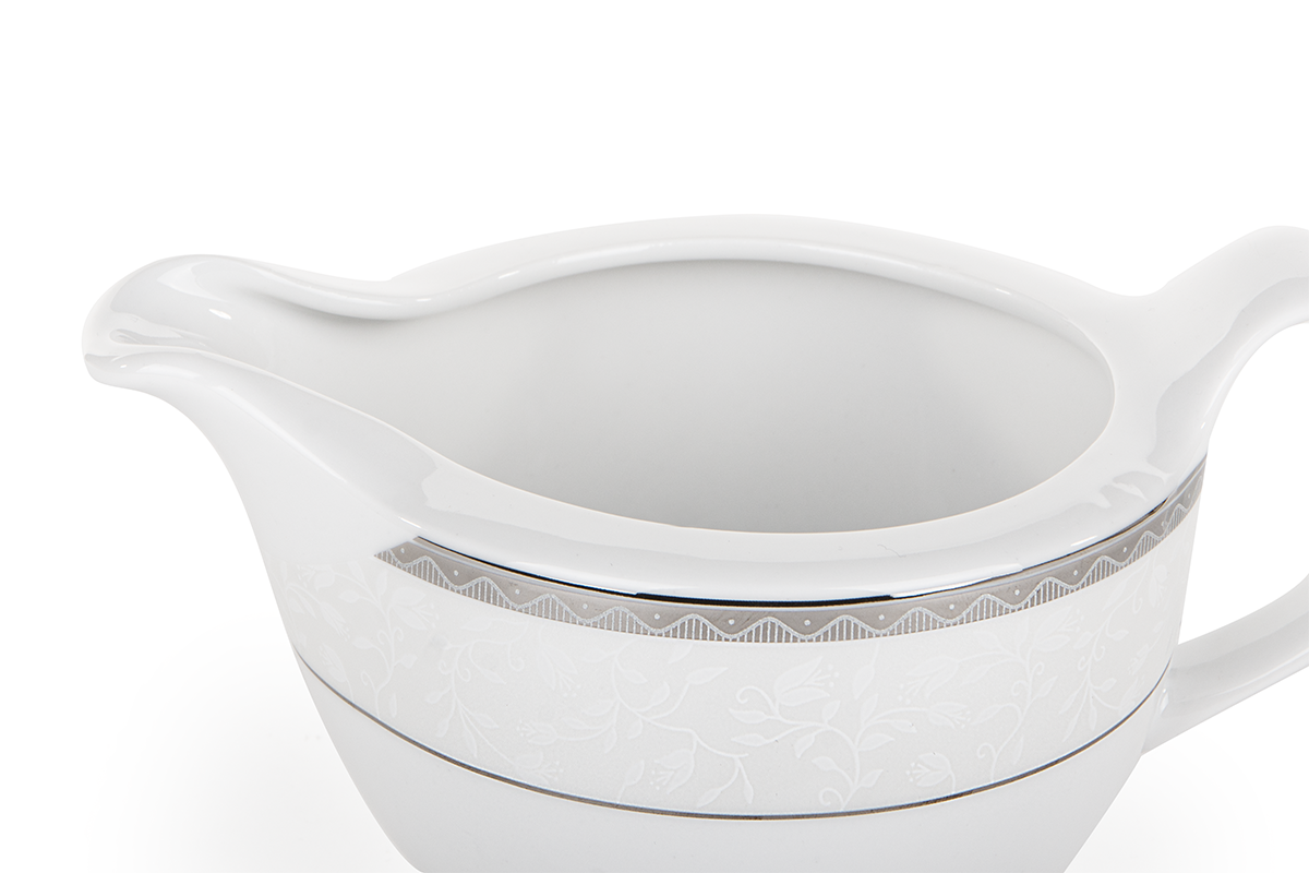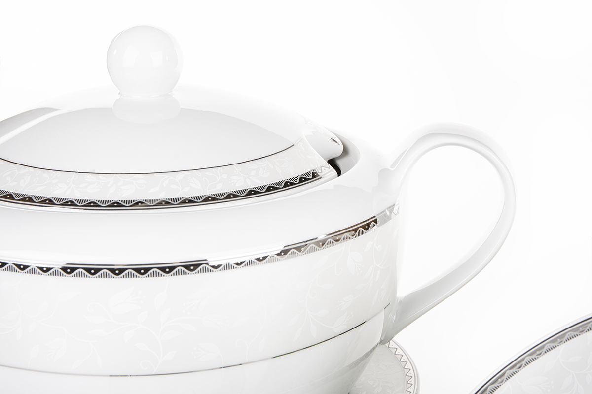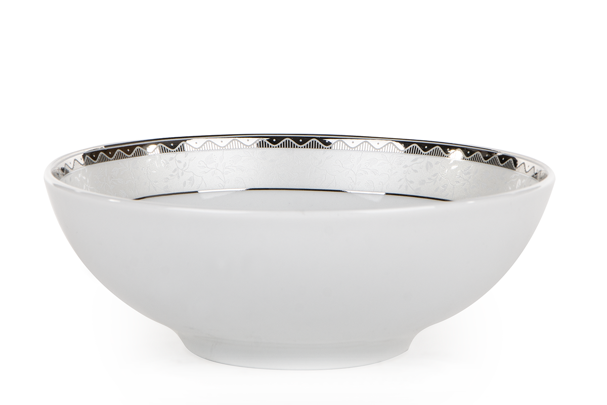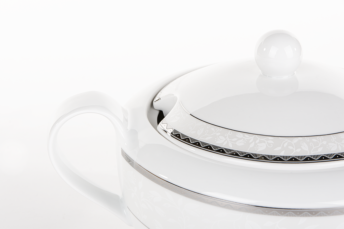 Wyrazista kolekcja naczyń AMELIA PLATYNA nada wnętrzom charakteru – doskonale będzie przyozdabiać stół czy wypełniać urokiem przeszklone witrynki. Zdobienie wyróżnia się znacząco kontrastującą z bielą falistą linią z oryginalnym wypełnieniem, a dodatkowego wdzięku nadają kolekcji naturalne, wypukłe motywy na śnieżnobiałej powierzchni. Kolekcję wykonano w całości w polskich fabrykach z najwyższej jakości porcelany, dzięki czemu przez długie lata będziesz mógł podawać gościom dania w pięknej porcelanie.