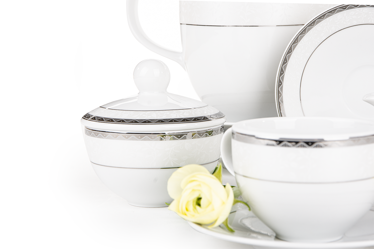 dla produktu Zestaw kawowy porcelana 9 elementów biały / platynowy wzór dla 6 os.