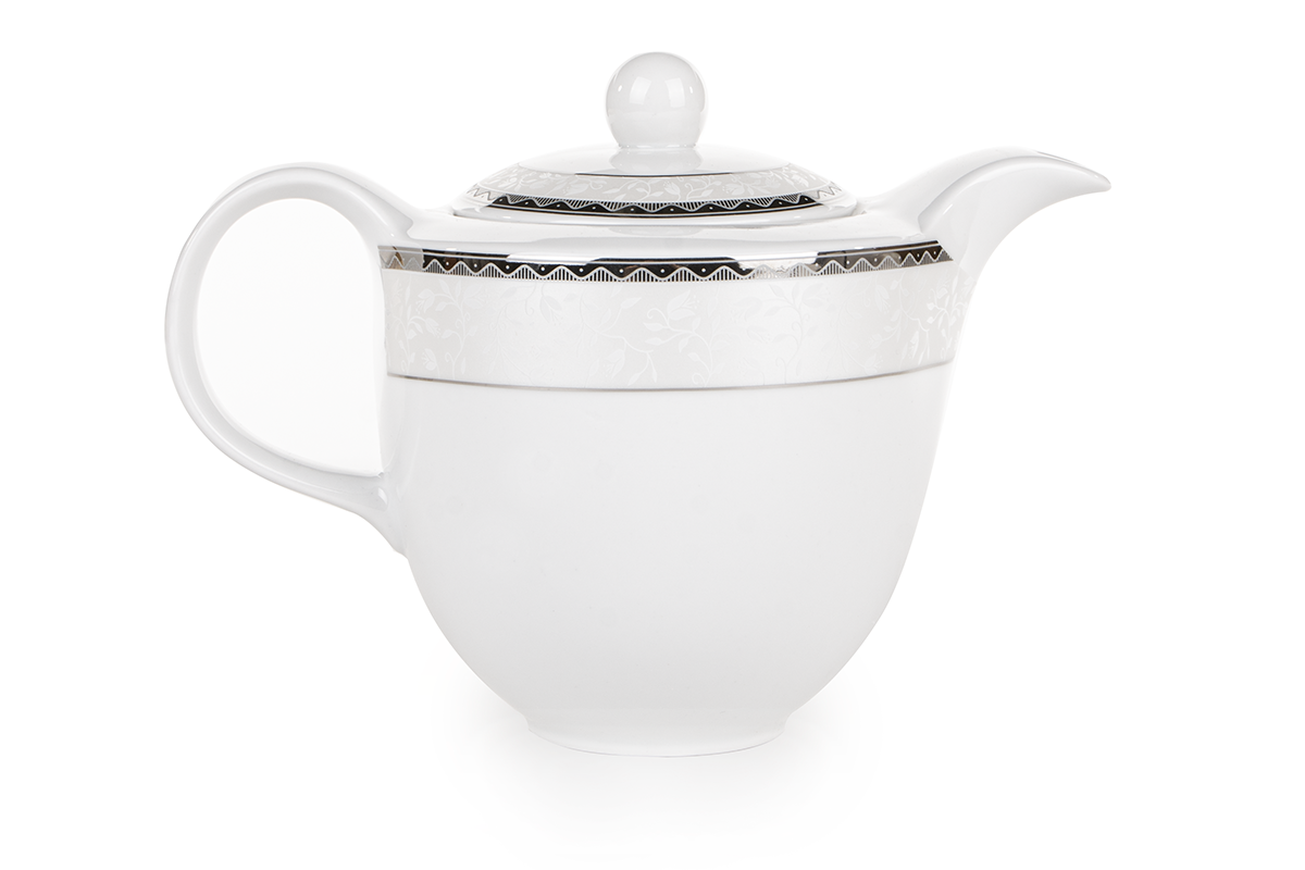 AMELIA PLATYNA zobacz całą kolekcję Zestaw kawowy porcelana 9 elementów biały / platynowy wzór dla 6 os.- kolor Platyna