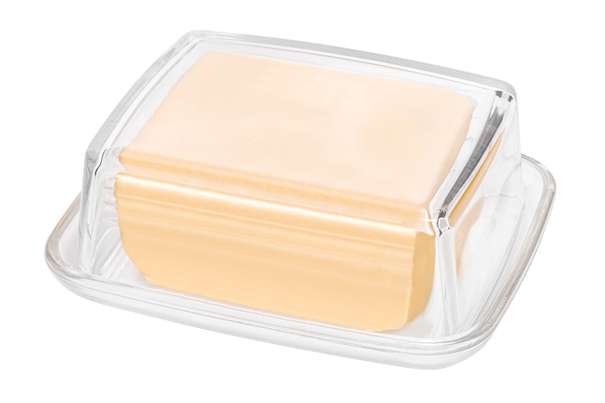 Szklana maselnica LUNA to naczynie o klasycznym kroju z pokrywą szczelnie zabezpieczające kostkę masła.