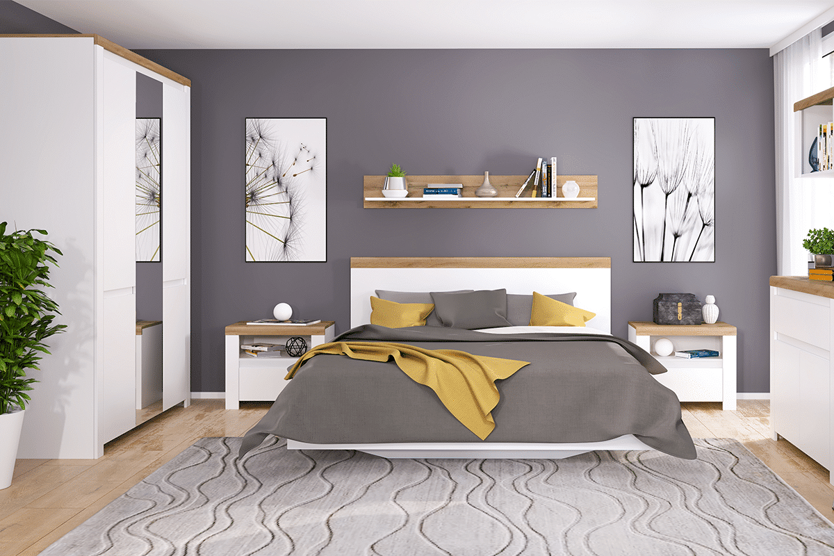Rama łózka do sypialni 160 x 200 biała / dąb