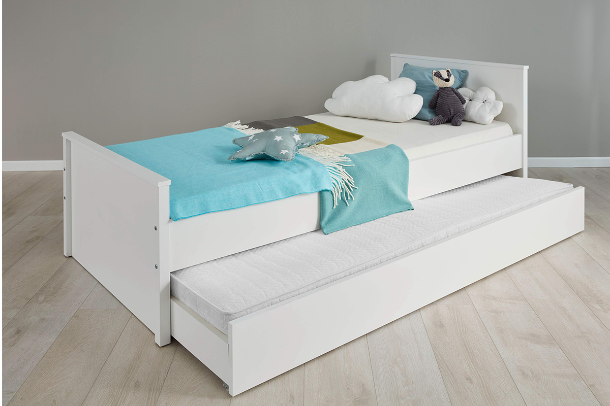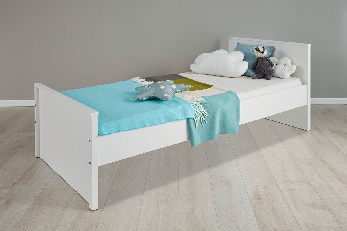 Dopełnieniem sypialni w nowoczesnym, eleganckim stylu będzie białe, proste łóżko. Standardowy rozmiar mebla - 90x200 pozwala na dobór materaca wedle potrzeb i wygody użytkownika spośród szerokiej gamy produktów dostępnych na rynku. Rama może pełnić funkcję zarówno łóżka do pokoju młodzieżowego, jak i mebla uzupełniającego na przykład do dużej garderoby lub pokoju gościnnego.