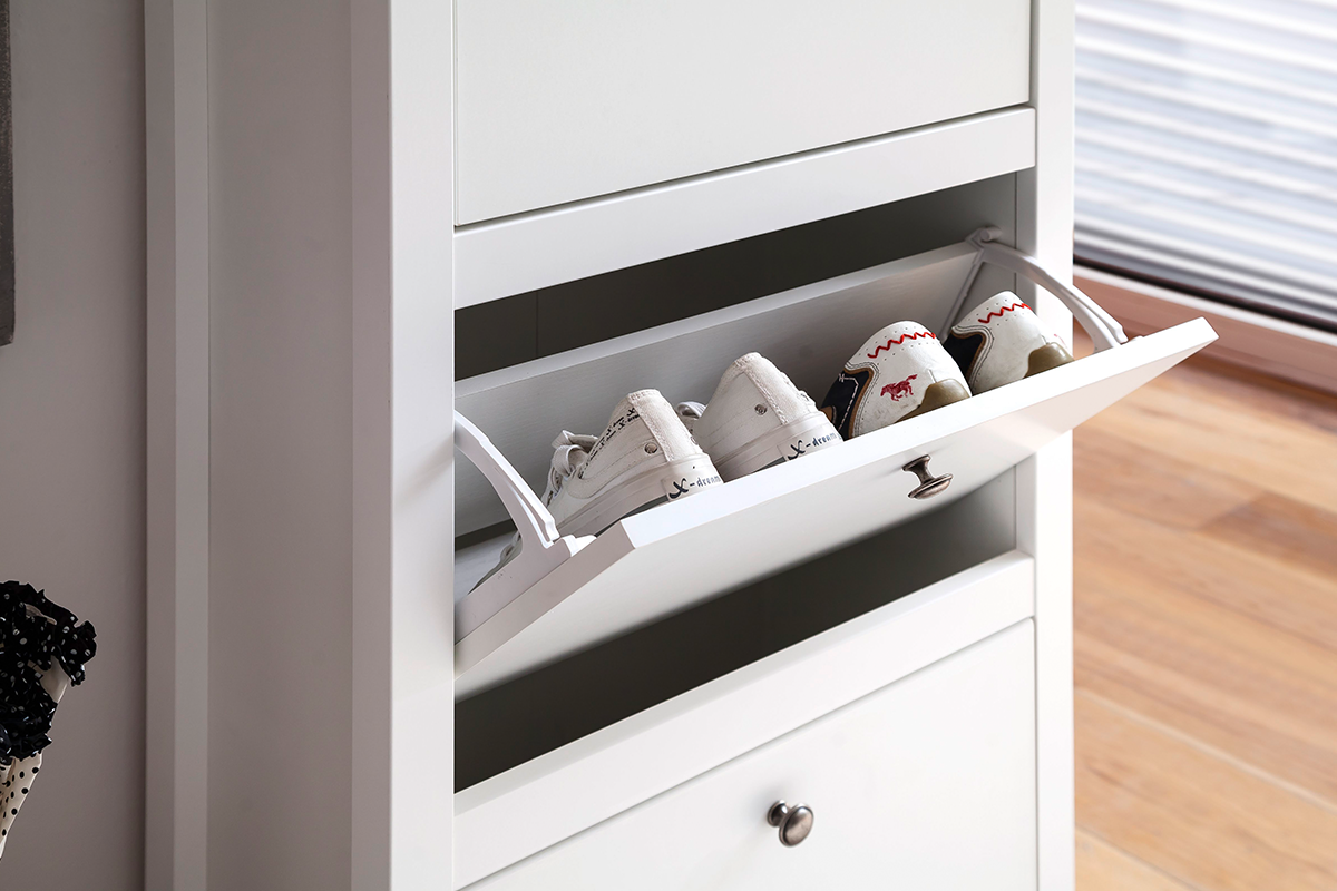 Biała szafka na buty dopełni zarówno wyposażenie garderoby, jak i aranżację przedpokoju. Przechowywanie obuwia w odpowiedni sposób znacznie przedłuża okres użytkowania ulubionych par - dlatego warto przeznaczyć do tego celu odpowiedni mebel.