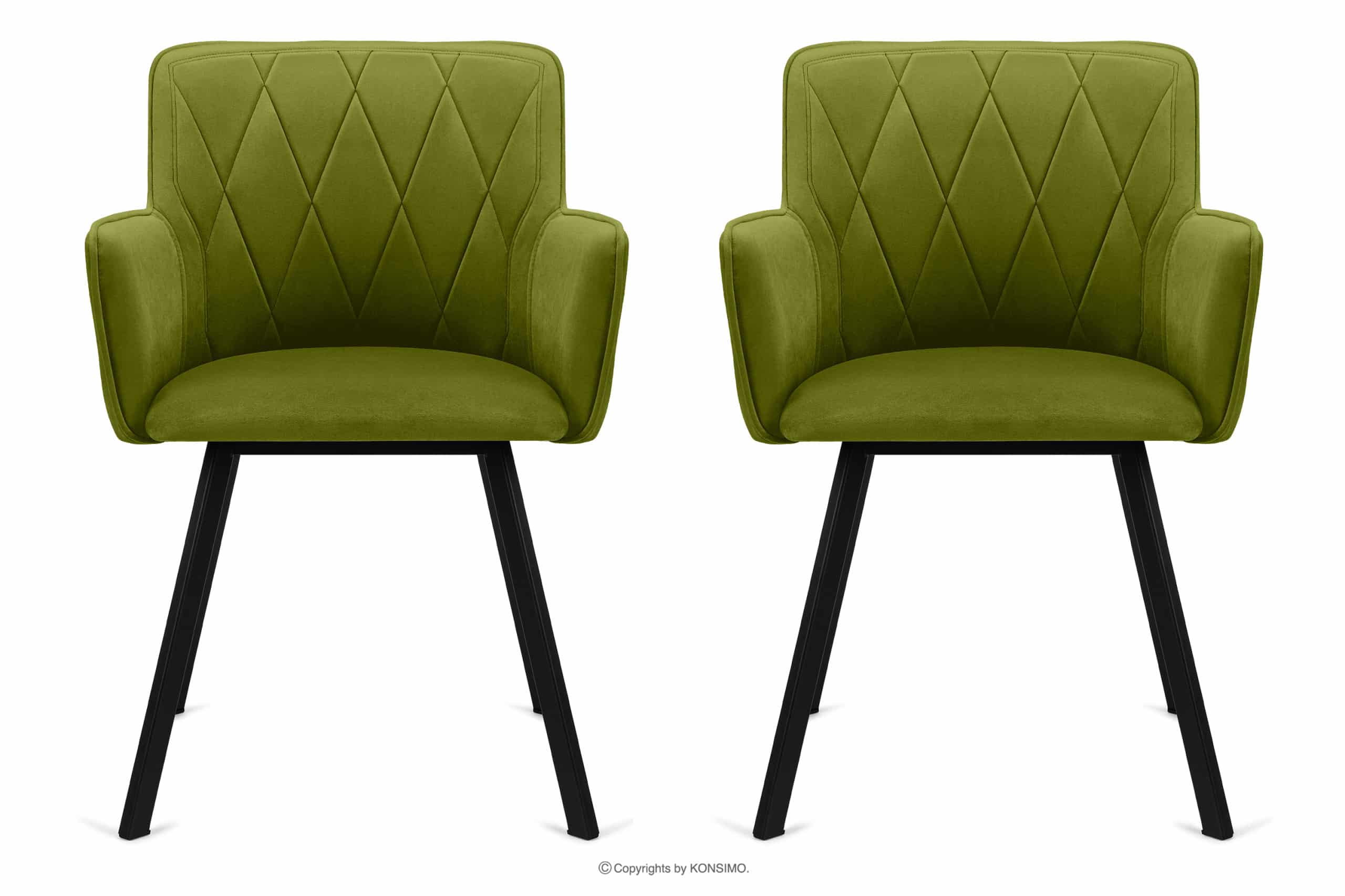 Krzesła do salonu welur zielone 2szt PYRUS - kolor oliwkowy/czarny