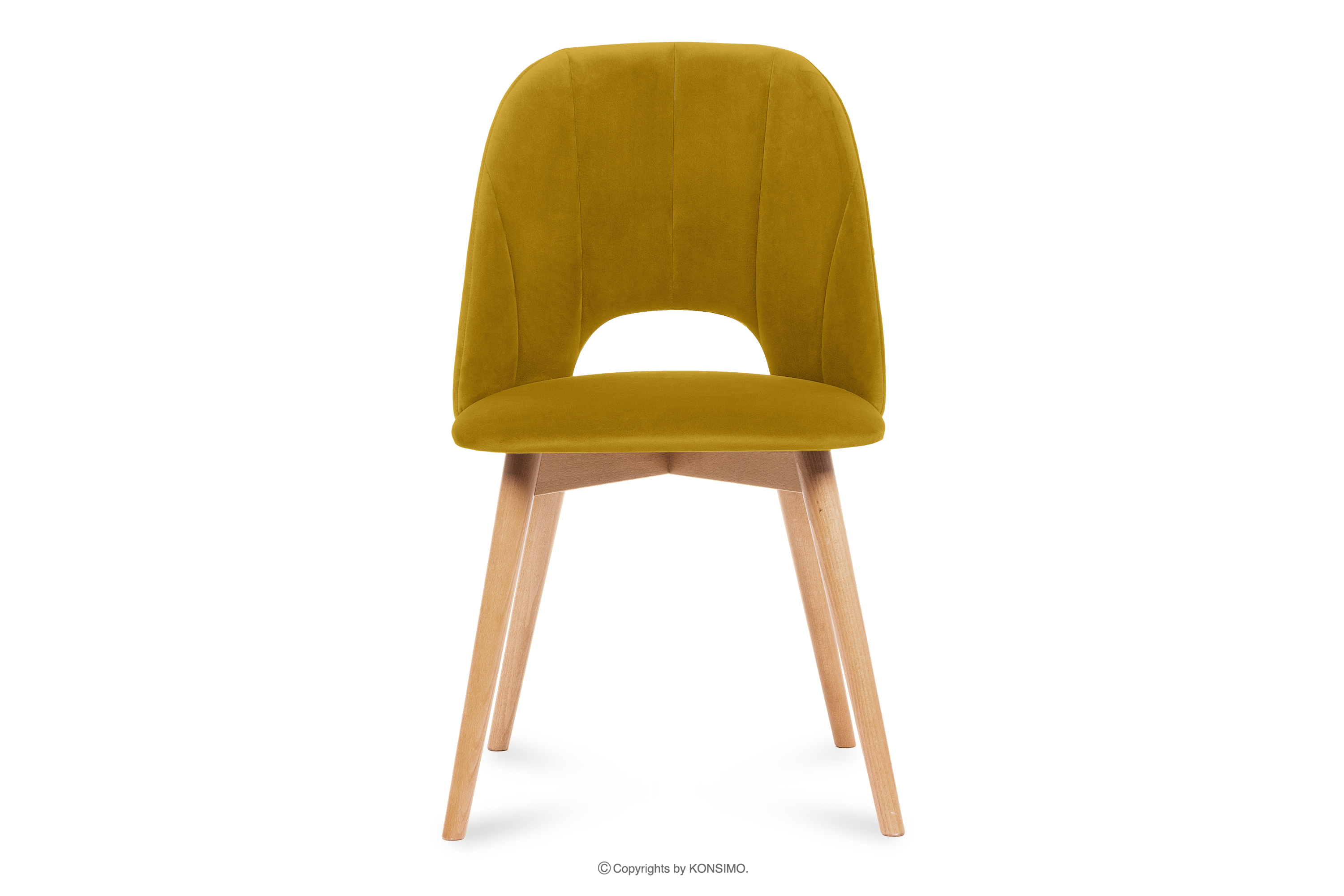 TINO zobacz całą kolekcję Krzesło do jadalni welur żółte- kolor musztardowy/jasny dąb