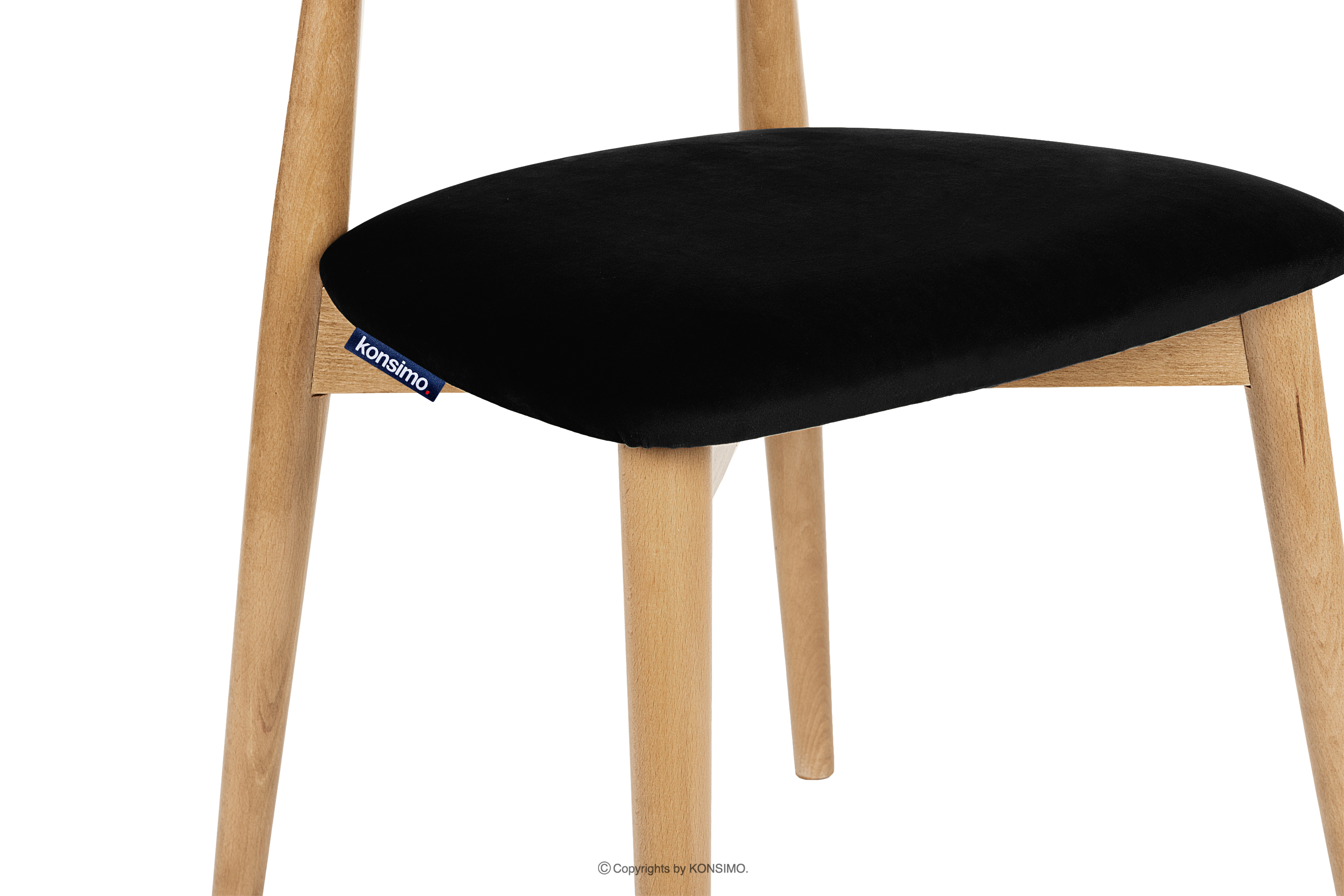 Krzesło drewniane dąb czarny welur RABI - kolor czarny/jasny dąb