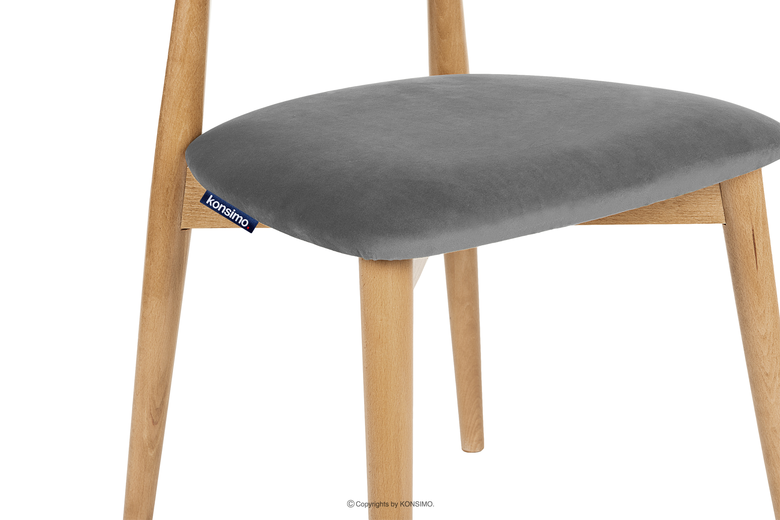 Krzesło drewniane dąb szary welur RABI - kolor szary/dąb jasny