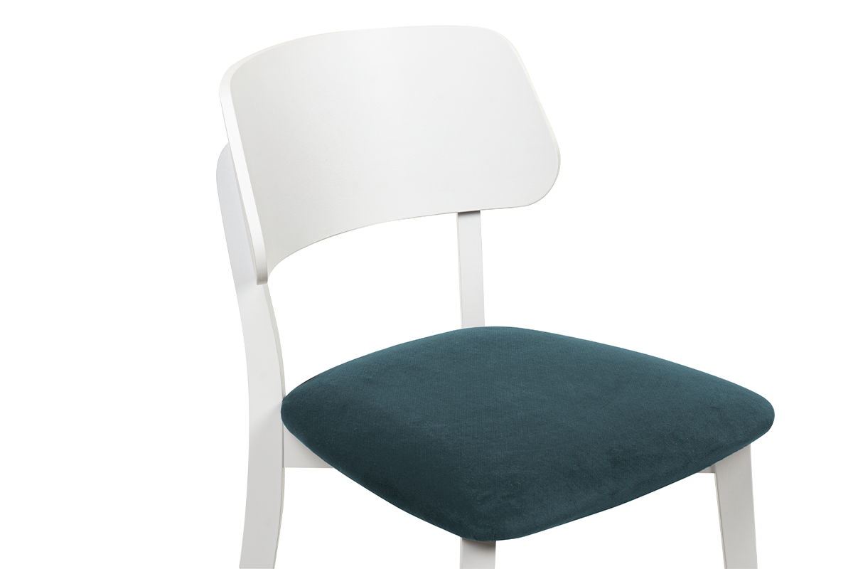 Krzesło VINIS to głównie klasyka z zachowaniem prostych kształtów. Nawiązuje do stylu retro dzięki połączeniu turkusowej tkaniny i ramy w kolorze bieli. Krzesło nowoczesne białe drewniane turkus wpasuje się w ciekawe aranżacje miłośników naturalnych wnętrz. Nadaje się do małych i dużych jadalni, zapewniając również wygodę podczas wspólnych rodzinnych posiłków.