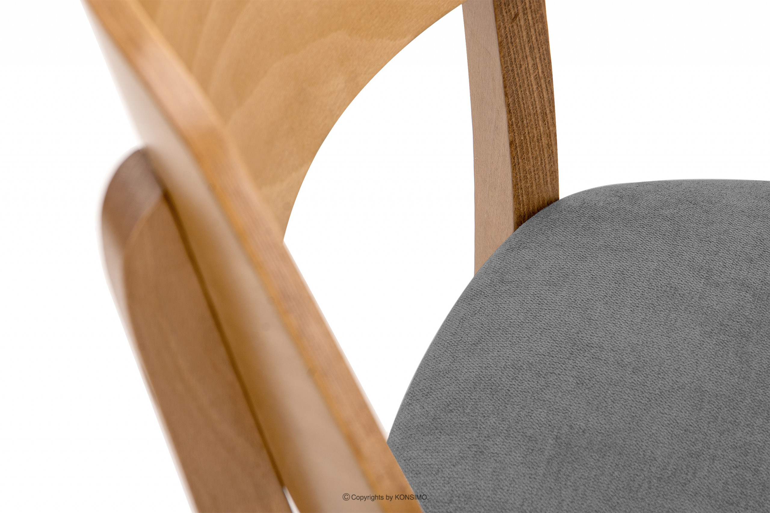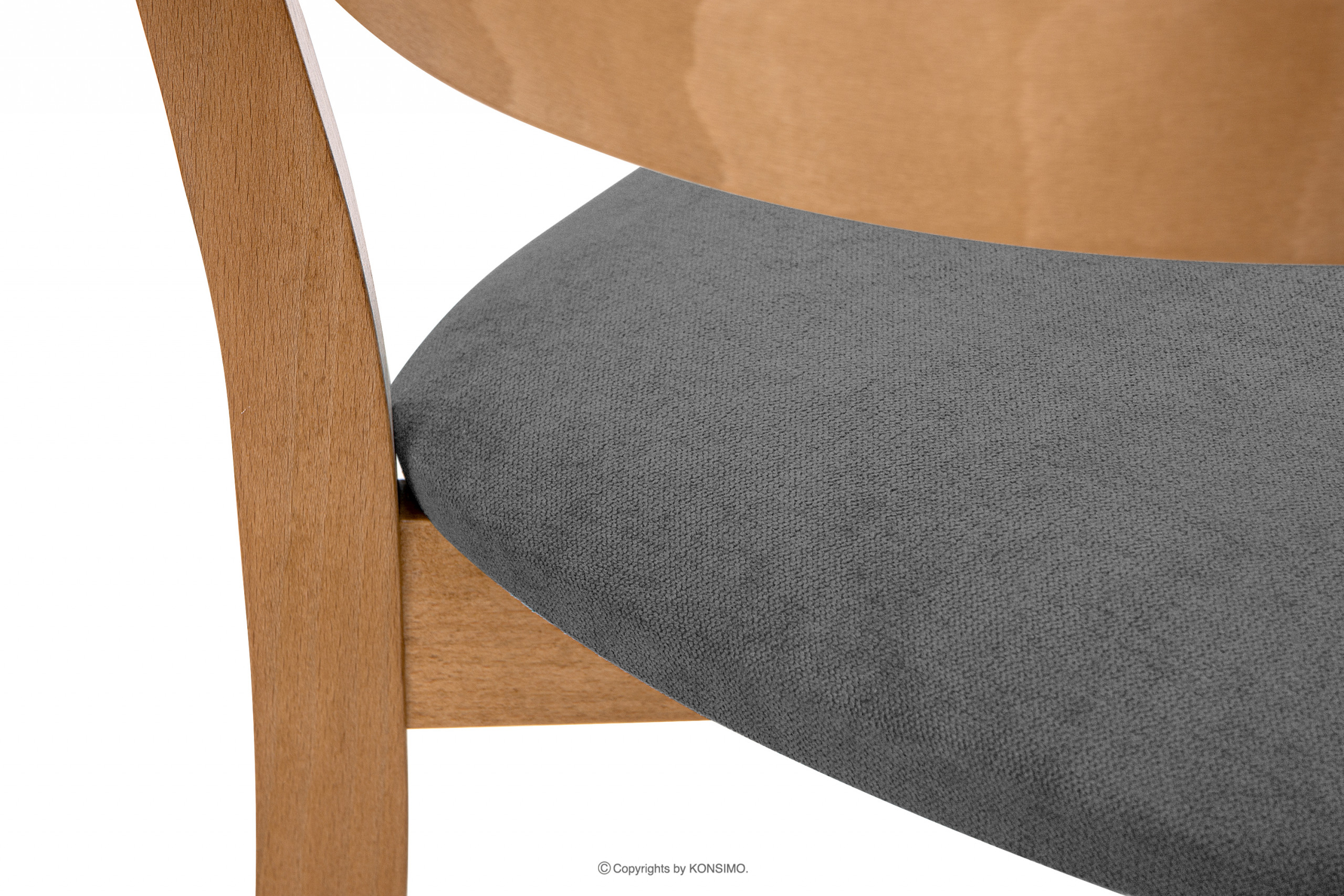 Siedzisko zostało wypełnione grubą pianką poliuretanową obitą welurową tkaniną. Jest łatwe w utrzymaniu czystości i posiada wysoki stopień odporności na ścieranie. Stelaż wykonany jest z litego drewna, gwarantując przy tym wysoką jakość. Oczywiście jest to inwestycja na lata, niestraszne im przeprowadzki i przemeblowania. Dopasuje się do wielu wnętrz oraz zachowa swój wygląd na bardzo długo.