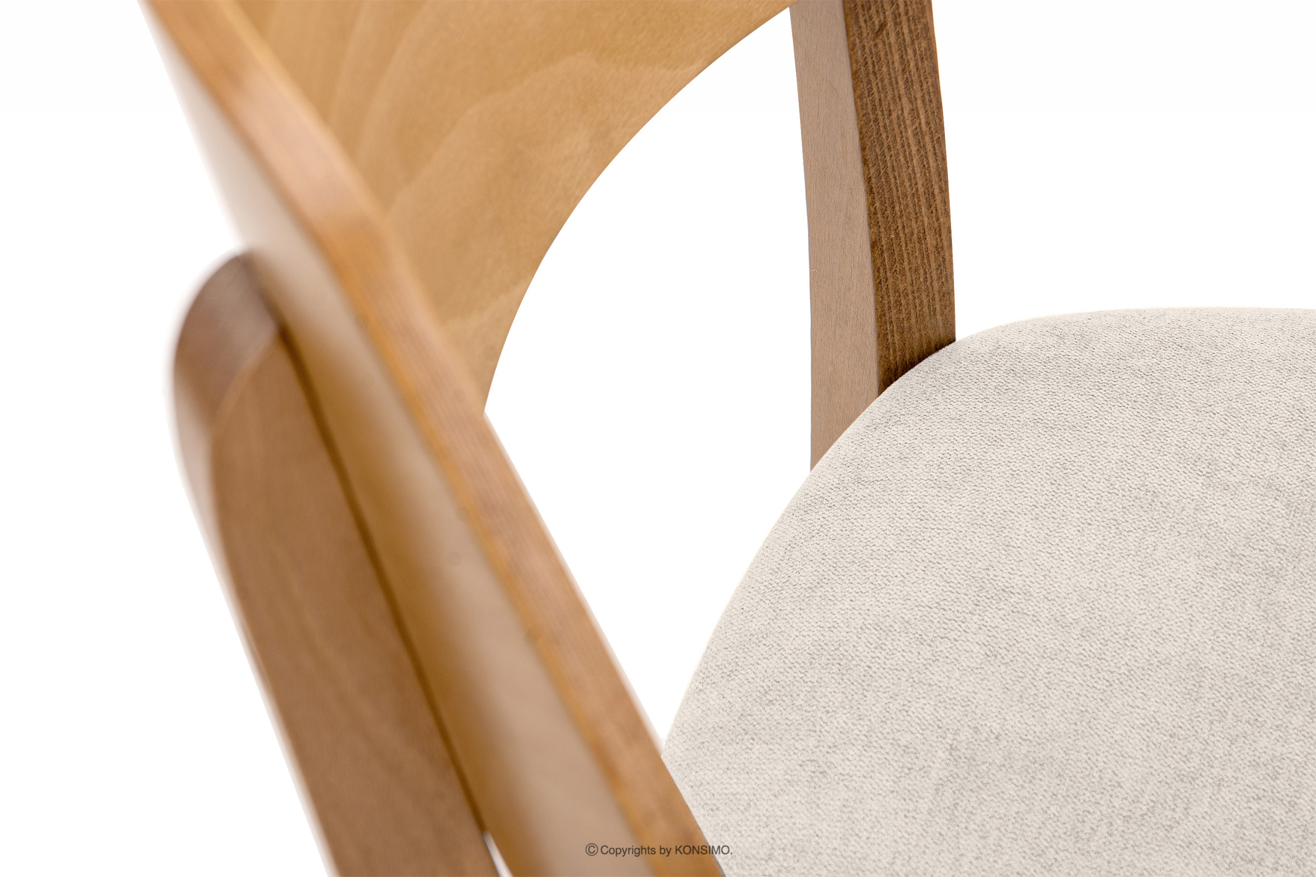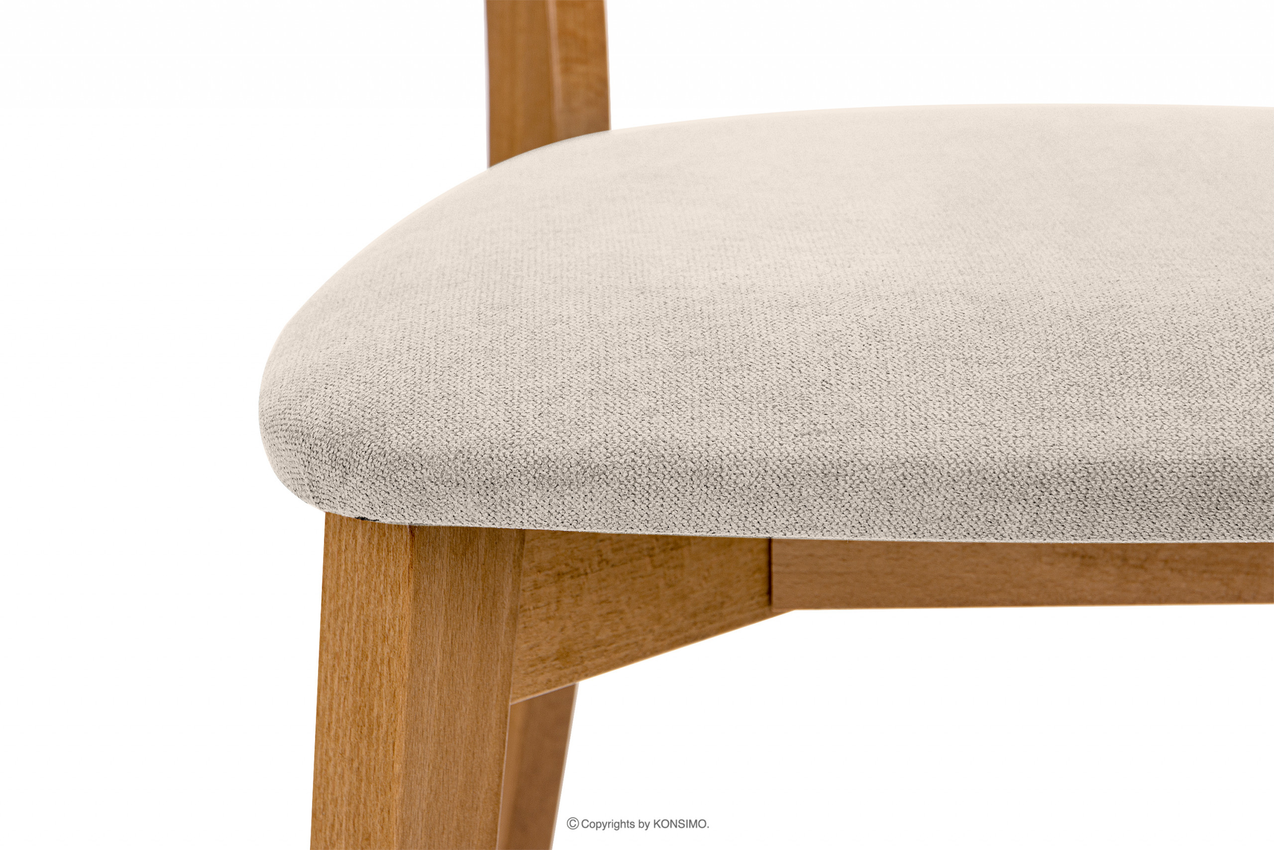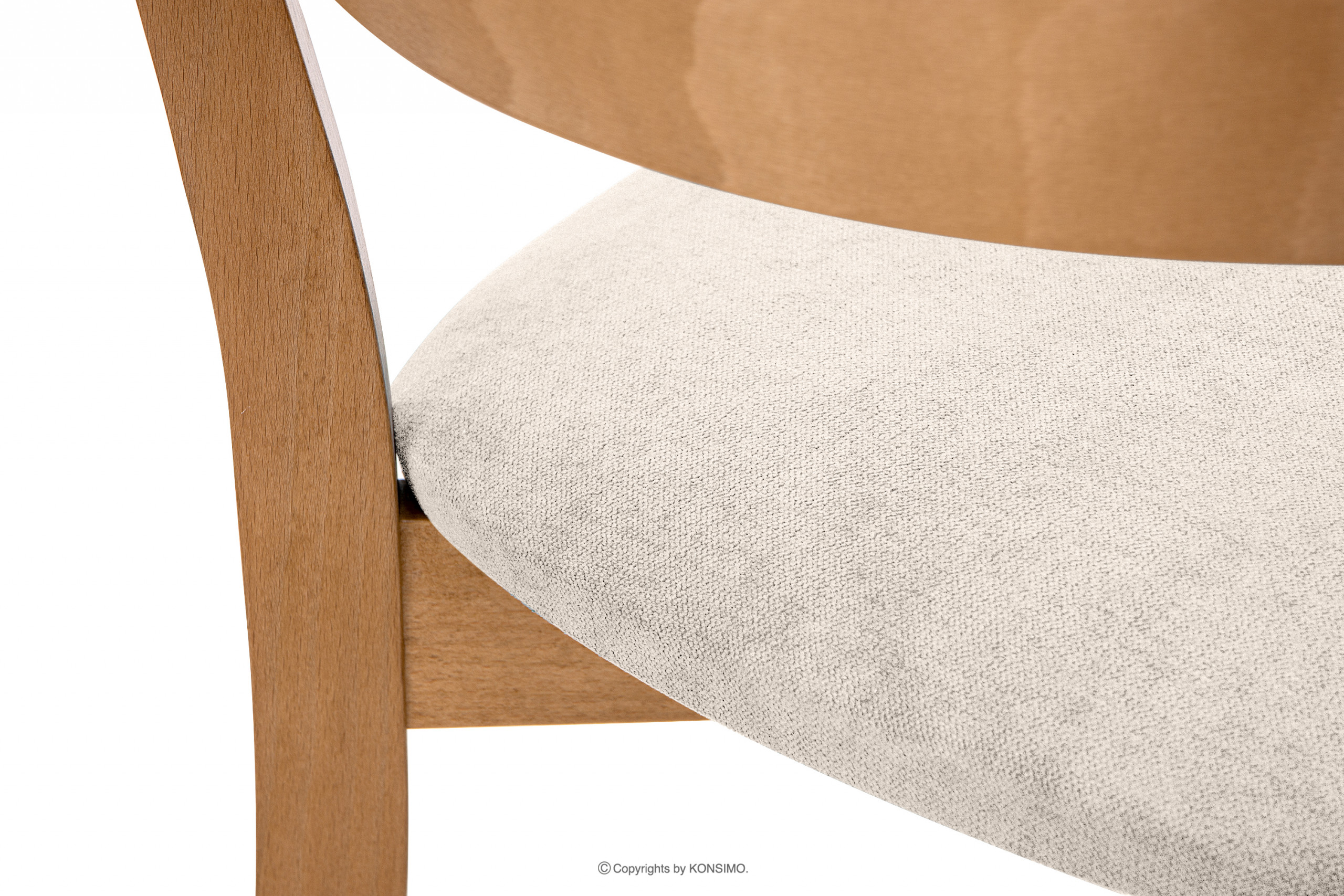 Krzesło VINIS to głównie klasyka z zachowaniem prostych kształtów. Nawiązuje do stylu retro dzięki połączeniu kremowej tkaniny i ramy w kolorze dębu. Krzesło nowoczesne drewniane dąb kremowe wpasuje się w ciekawe aranżacje miłośników naturalnych wnętrz. Nadaje się do małych i dużych jadalni, zapewniając również wygodę podczas wspólnych rodzinnych posiłków.