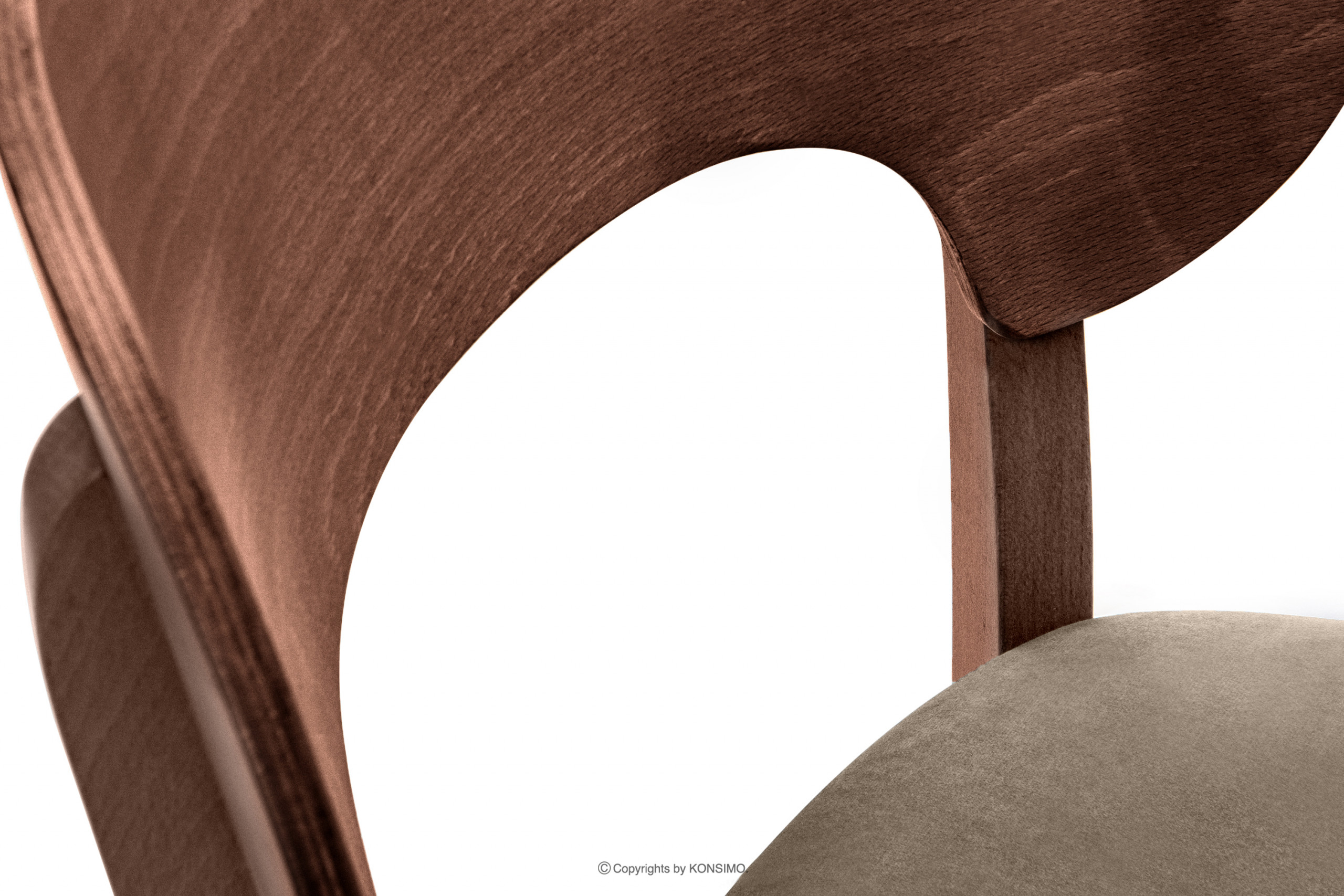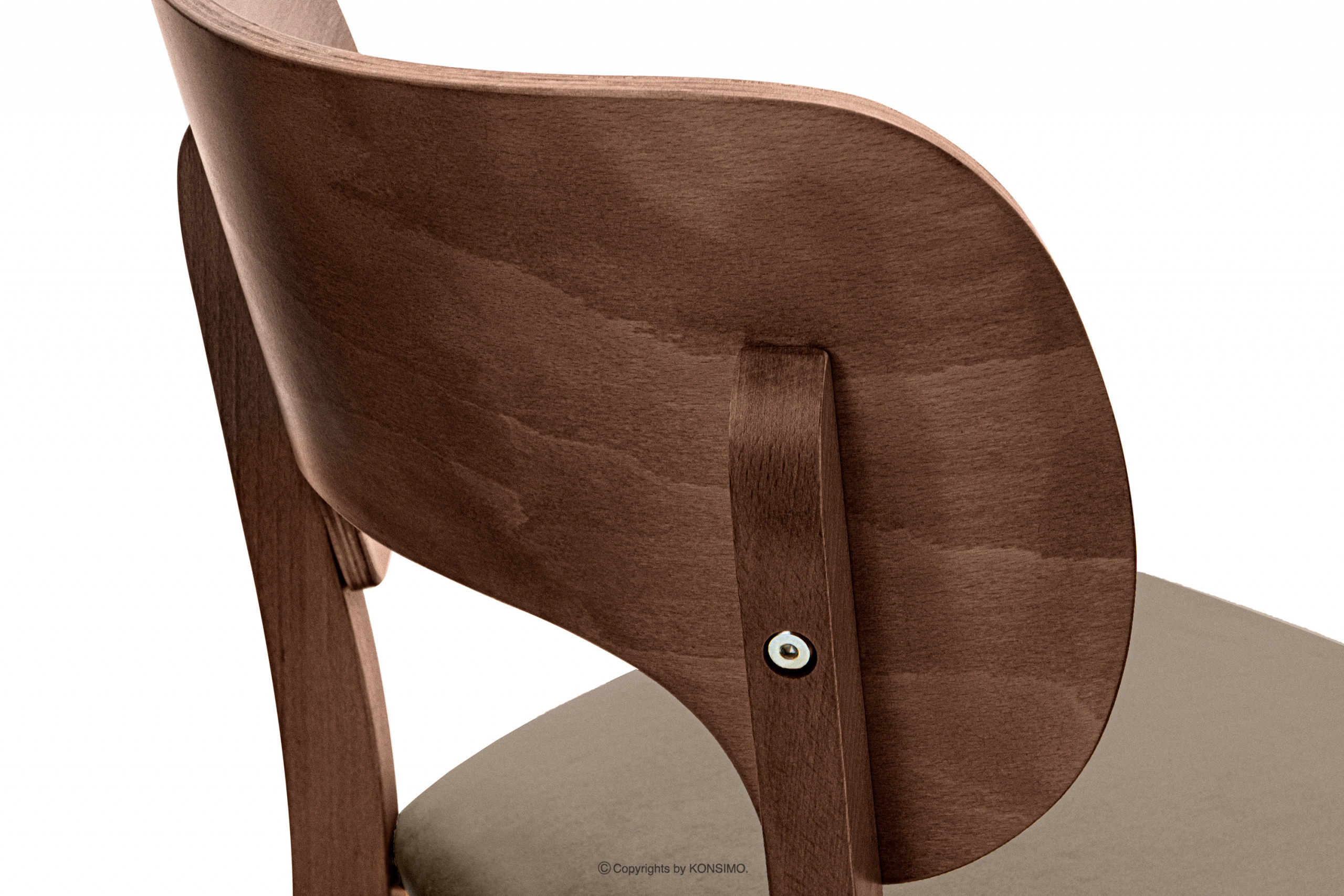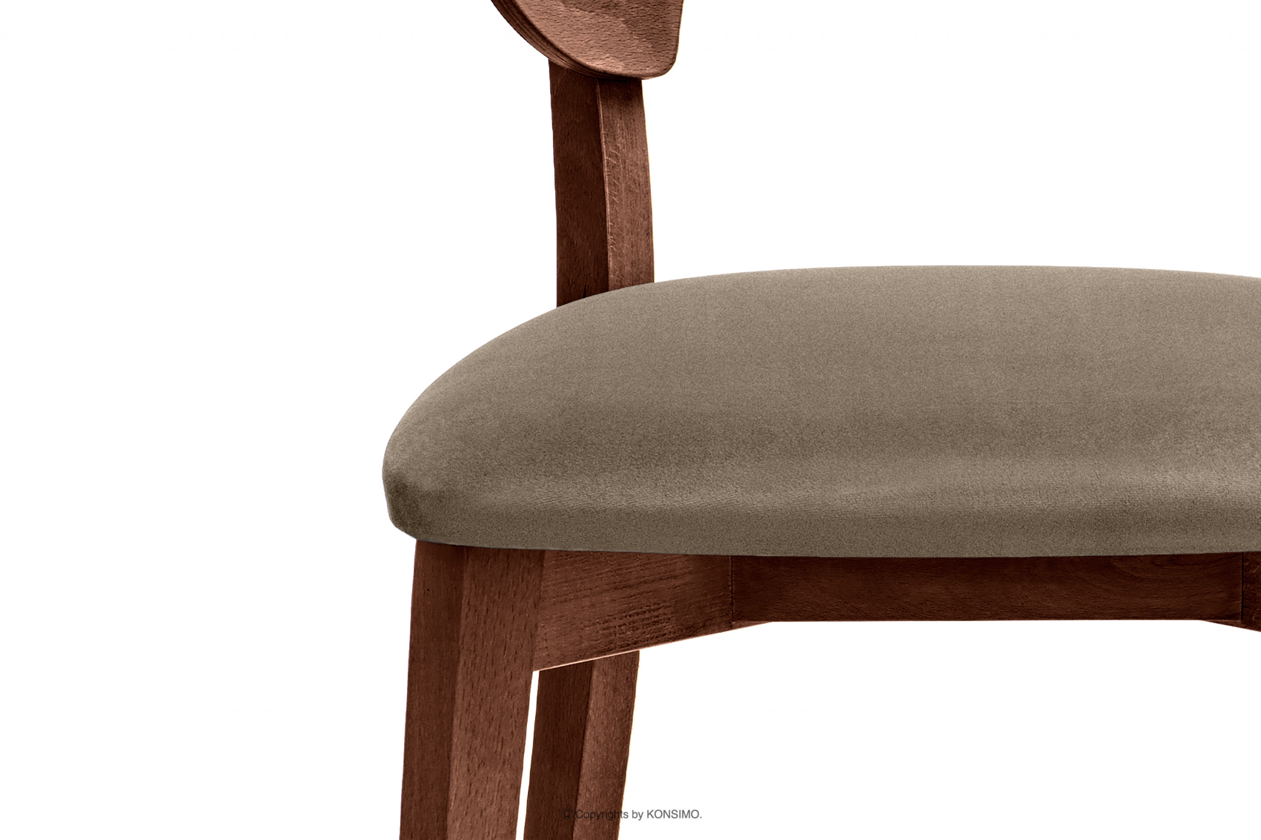 Siedzisko krzesła zostało wypełnione pianką poliuretanową i obite welwetową tkaniną. Łatwo je utrzymać w czystości, a do tego materiał jest miły w dotyku. Oprócz tego wygodę zapewnia również delikatnie wygięte siedzisko, które jest dopasowane do użytkownika. Oczywiście pełni także funkcję estetyczną, świetnie wygląda wraz z lekko zagiętymi nogami.