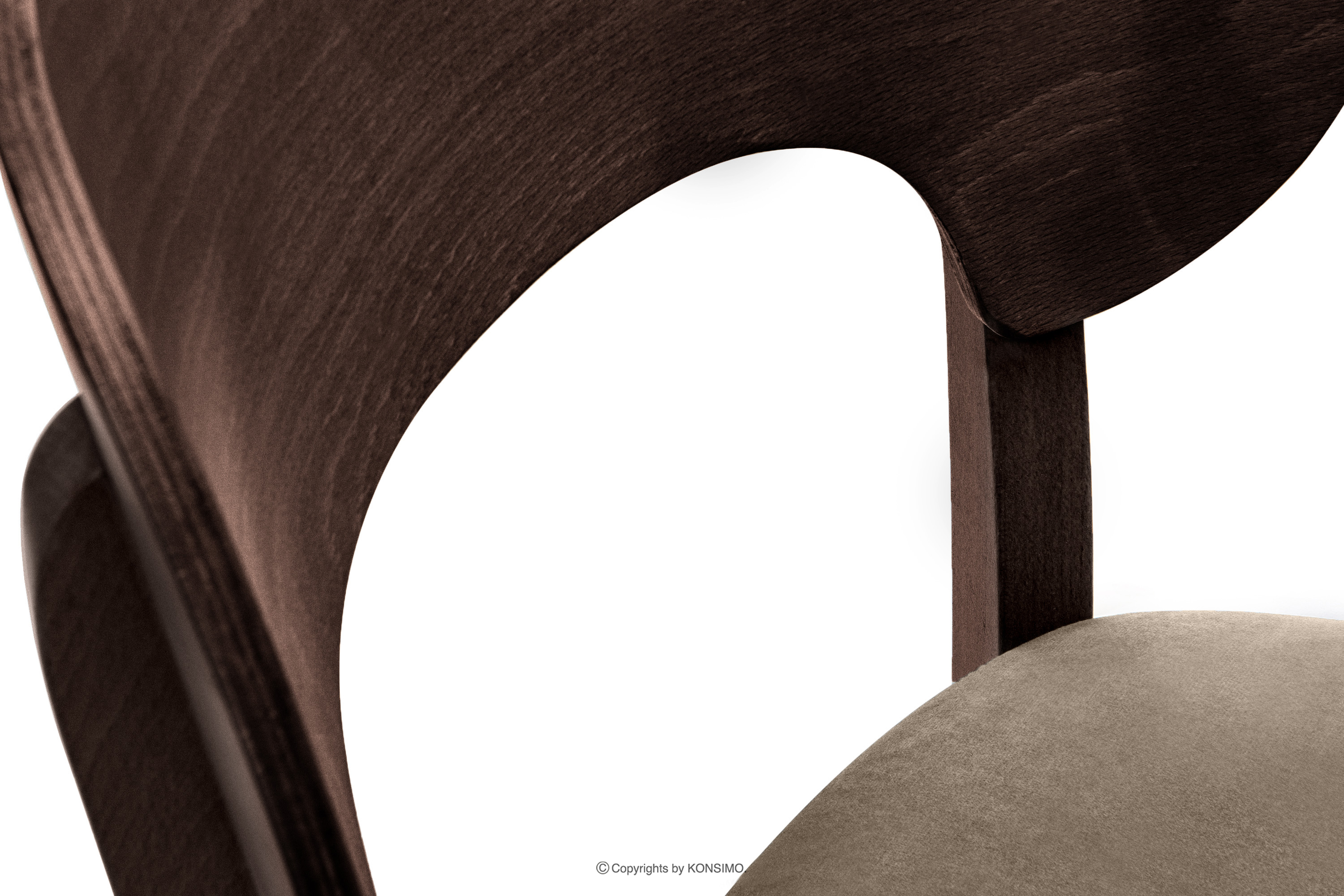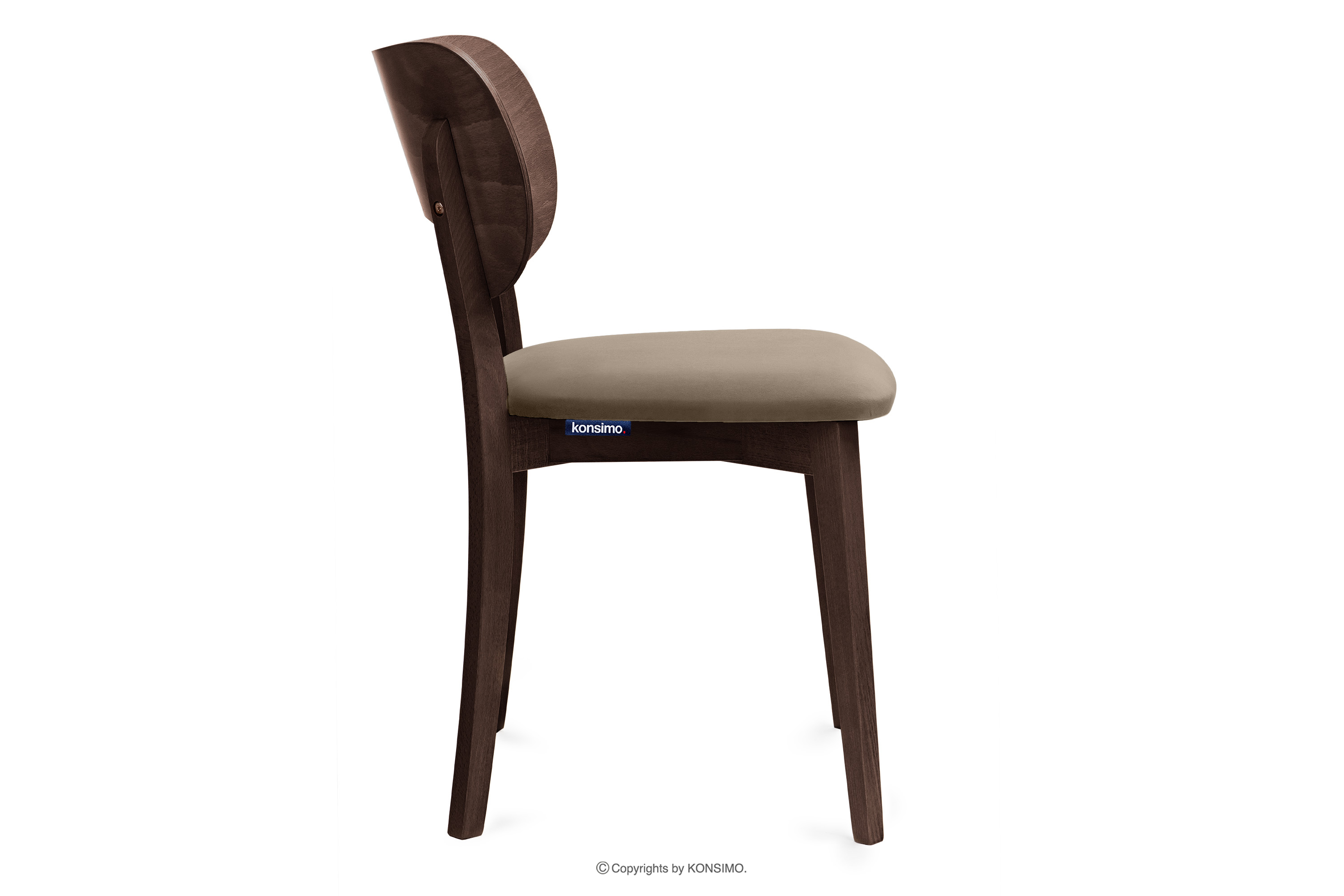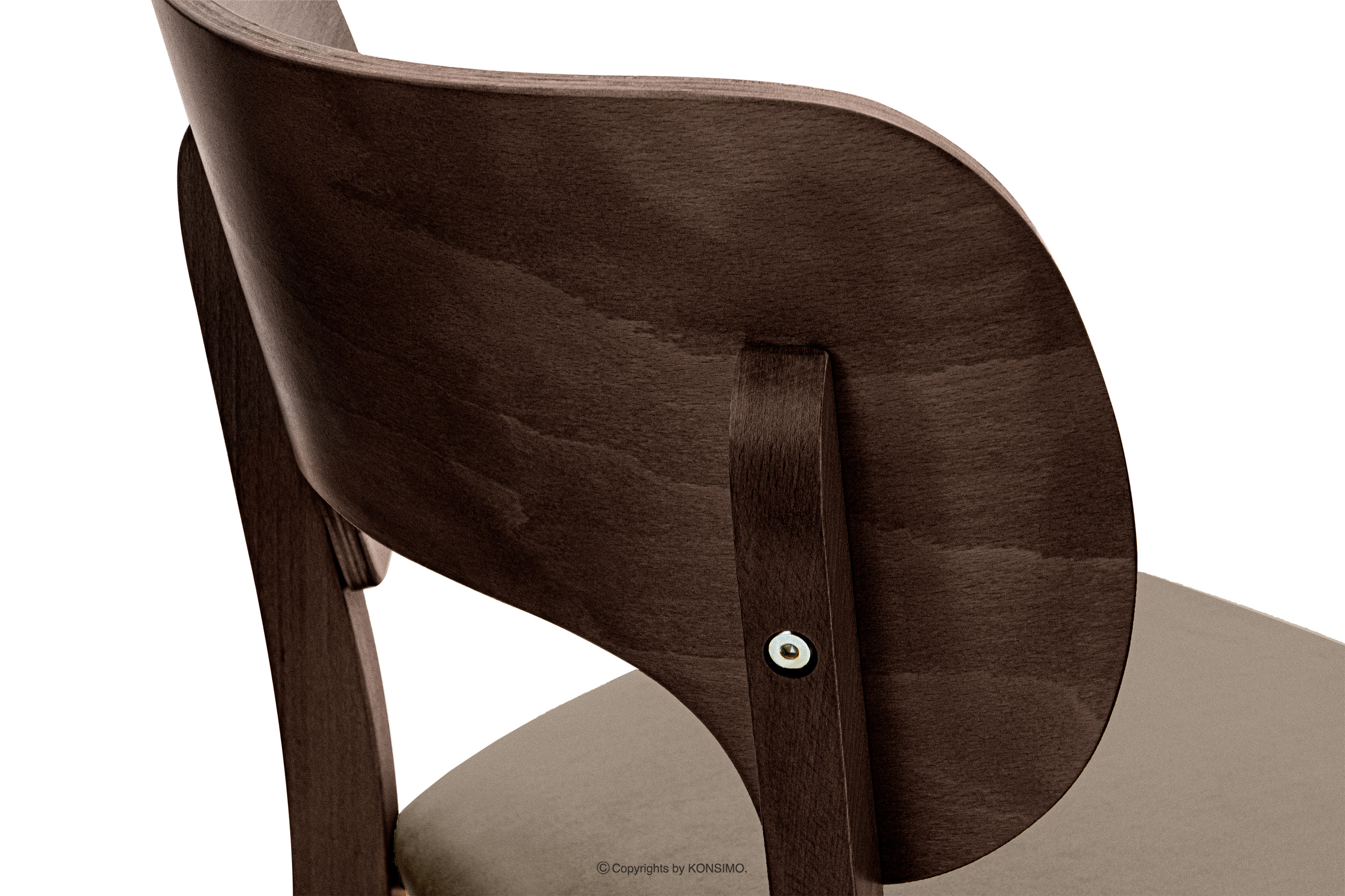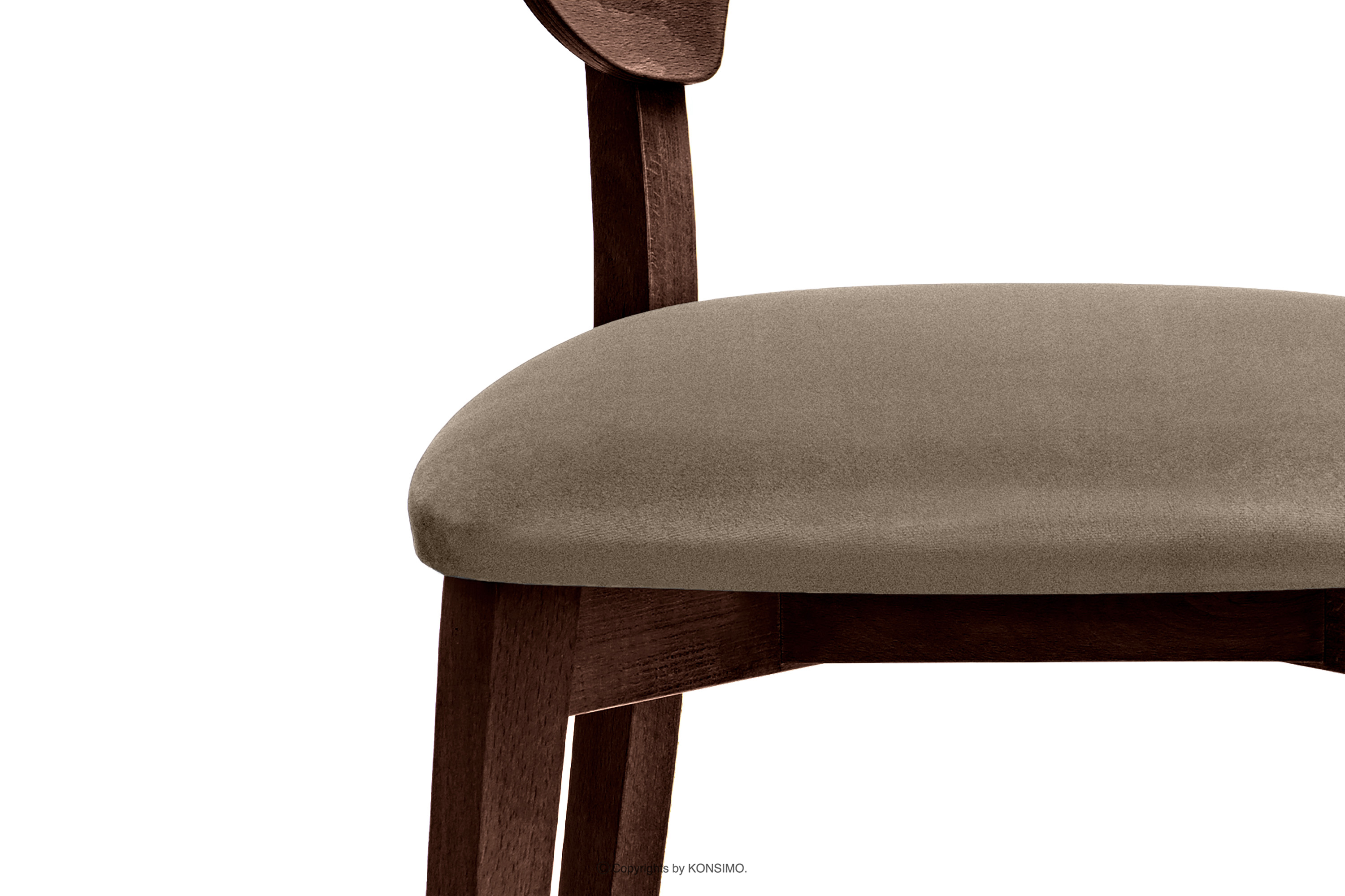 Siedzisko krzesła zostało wypełnione pianką poliuretanową i obite welwetową tkaniną. Łatwo je utrzymać w czystości, a do tego materiał jest miły w dotyku. Oprócz tego wygodę zapewnia również delikatnie wygięte siedzisko, które jest dopasowane do użytkownika. Oczywiście pełni także funkcję estetyczną, świetnie wygląda wraz z lekko zagiętymi nogami.