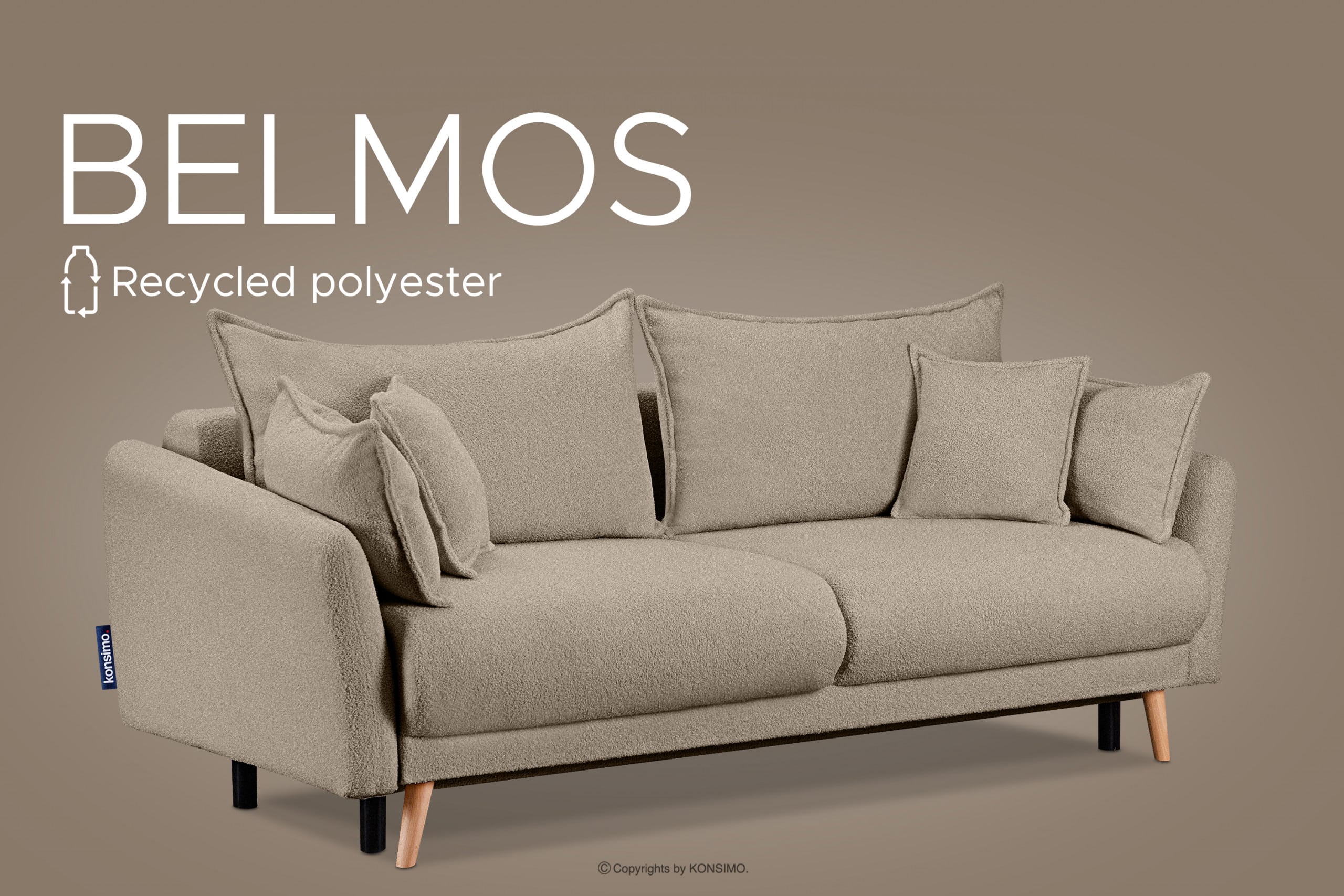 BELMOS zobacz całą kolekcję Brązowa sofa z funkcją spania w tkaninie baranek- kolor brązowy