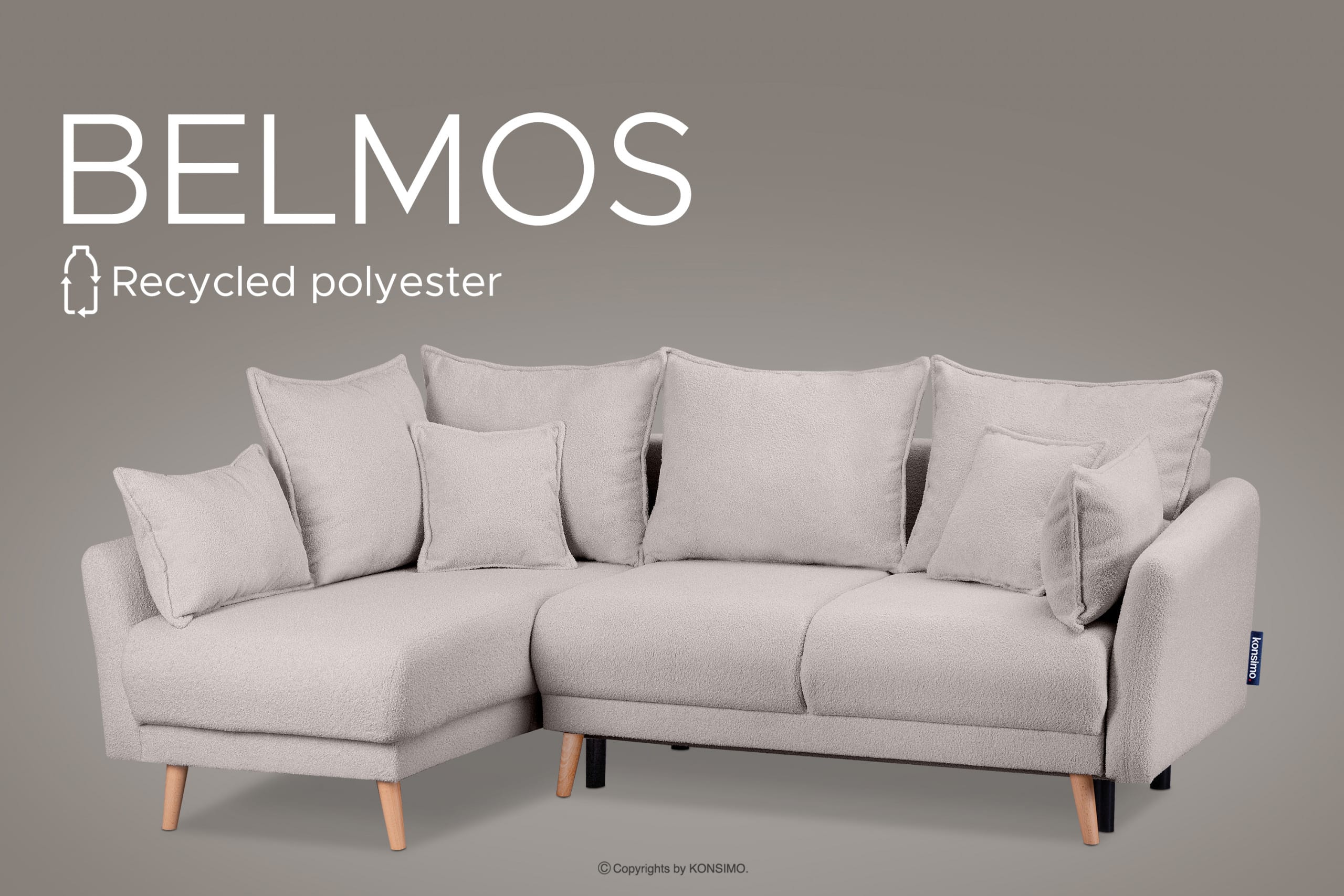 BELMOS zobacz całą kolekcję Narożnik szary rozkładany w tkaninie boucle lewy- kolor szary
